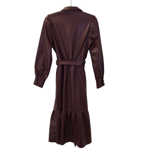 Evereve Isabella Faux Leather Puff Sleeve Midi Dress Size Small
