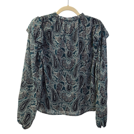 Evereve Paisley Print Ruffle Shoulder Popover Blouse Size Small