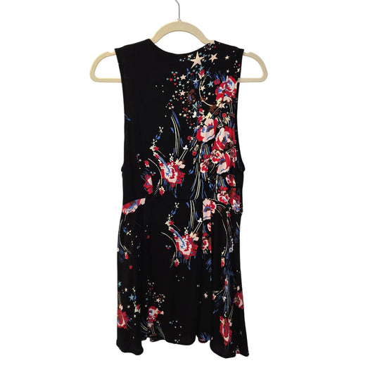 Free People Back to Basics Floral and Star Print Wrap Tunic Top Size Medium