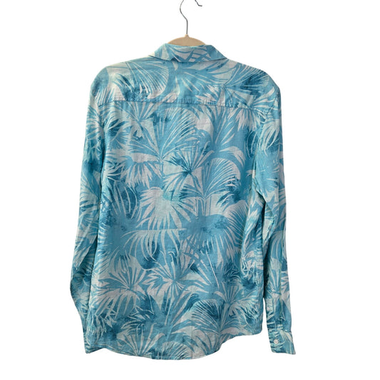 INC International Concepts Linen Blend Tropical Print Button Down Shirt Size Small