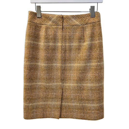 J. Crew Wool Blend The Pencil Skirt in a Gold Plaid Pattern Size 2