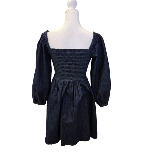 J. Crew Smocked Puff Sleeve Chambray Mini Dress Size XS