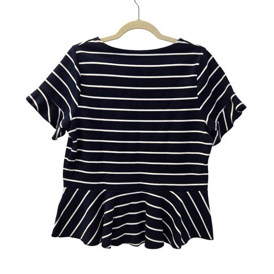 J. Crew Striped Ruffle Sleeve Peplum Hem Top Size Large