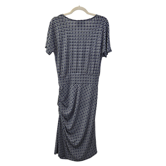 Leota Graphic Print Side Ruched Midi Dress Size Medium