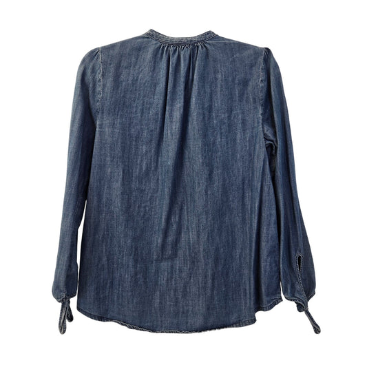 Madewell Oversized Chambray Hidden Button Puff Sleeve Tie Wrist Top Size XS/S
