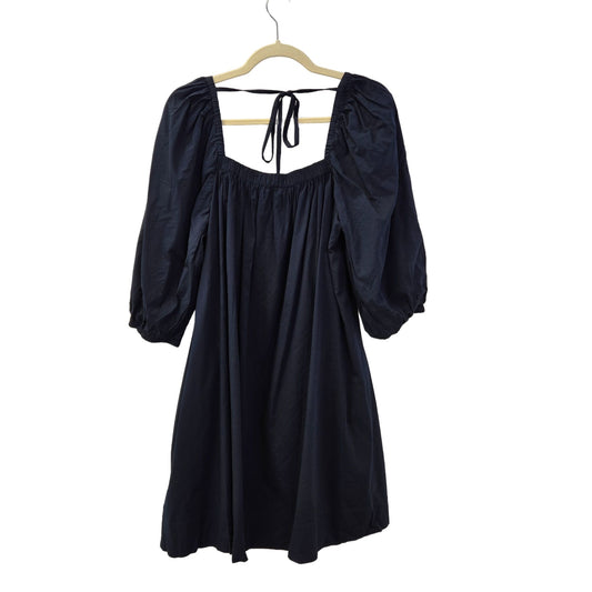 NWT Madewell Depeche Navy Puff Sleeve Babydoll Mini Dress Size 12