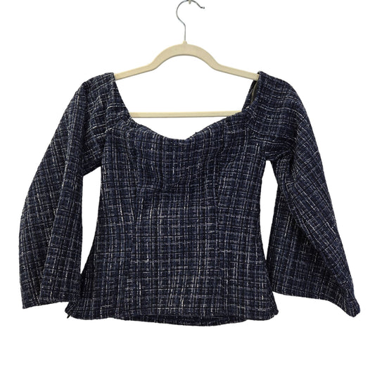 NWT Zara Tweed Off-the-Shoulder Bell Sleeve Crop Top Size XS