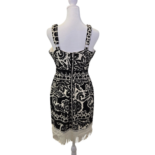 Tahari ASL Border Print Fringe Trim Sheath Dress Size 2