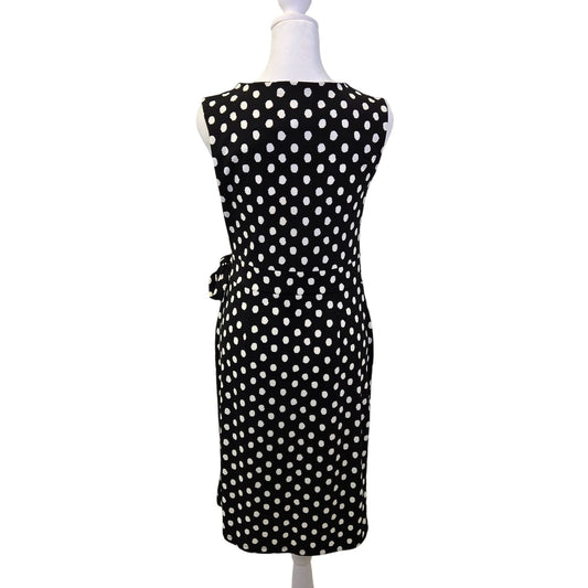 Talbots Petite Polka Dot Faux Wrap Side Tie Dress Size Small Petite