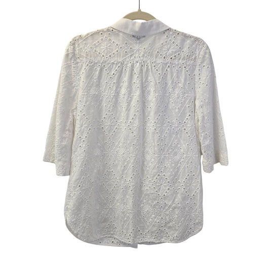 Talbots Petites Eyelet Button Down 3/4 Sleeve Shirt Size Large Petite