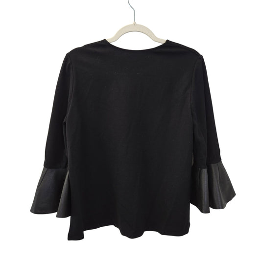 BCBGMaxAzria Vegan Leather Trim Bell Sleeve Boho Top Size Small