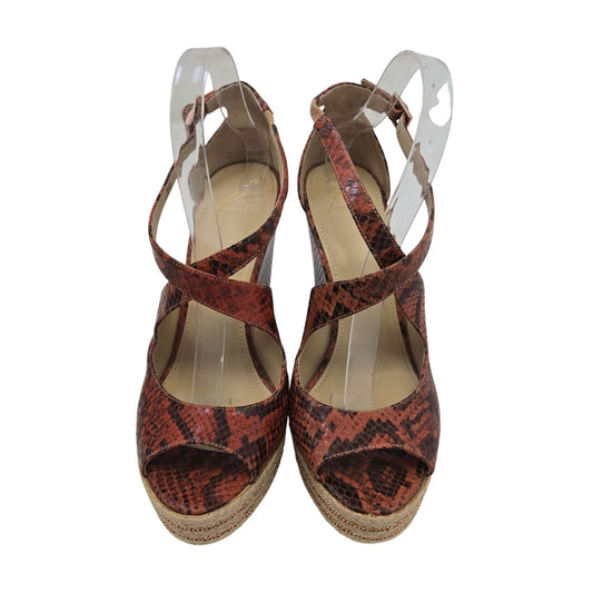 B Brian Atwood Leather Dekoda Snake-Print Platform Wedge Sandals Size 6