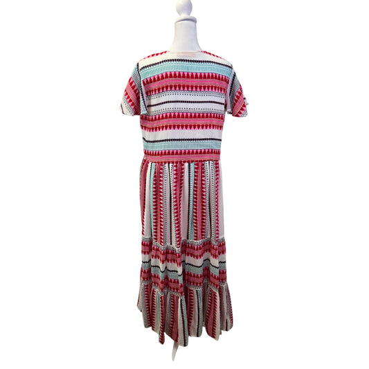 Oliphant Mezcal Embroidered Teired Hem Flutter Sleeve Maxi Dress Size Medium