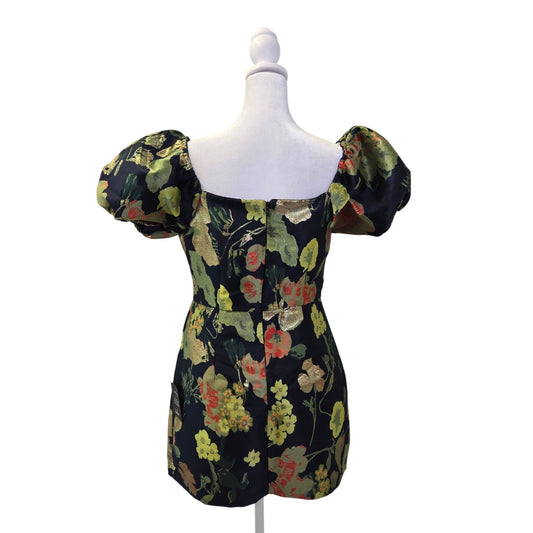 Fate Floral Metallic Ruffle Sleeve Boho Mini Dress Size XS