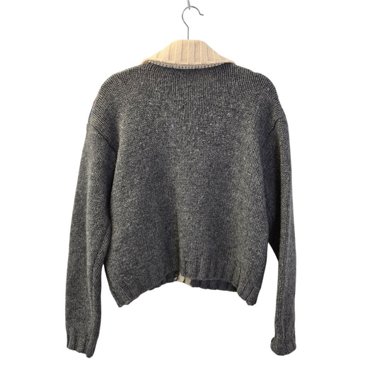 Express Tricot Vintage 100% Wool Fair Isle Print Full Zip Sweater Size Large