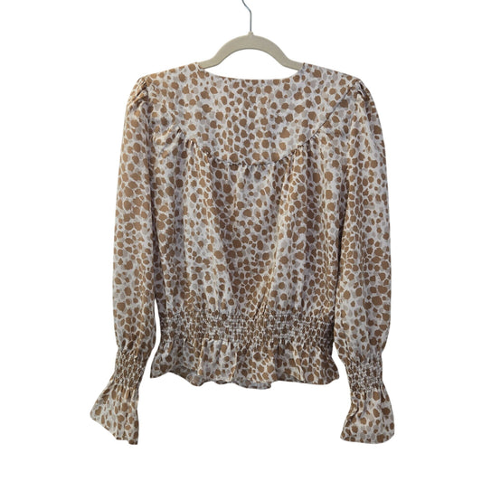 Ann Taylor Animal Print Smocked Waist Boho Blouse Size Small