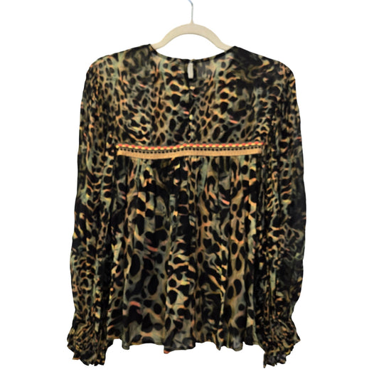 Anthropologie Bl-nk Joelle Leopard Viscose Baby Doll Peasant Blouse Size XS/S