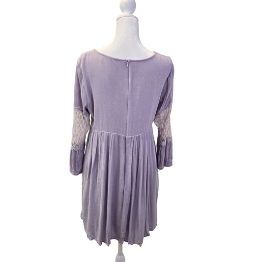 Peach Love Rayon Lace Embellished Boho Mini Dress Size Large