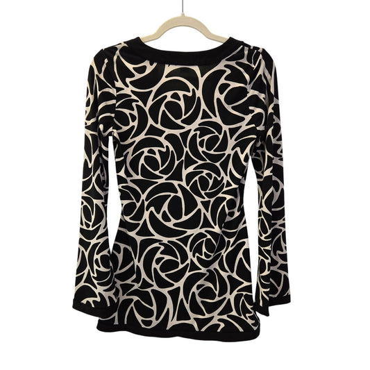White House Black Market Graphic Print Flare Sleeve Top Size Small