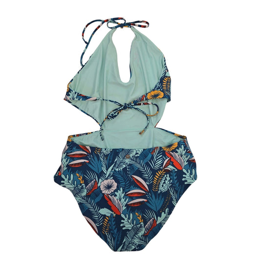 Speedo Aria Plunge Tropical Print One Piece Swimsuit Size Large