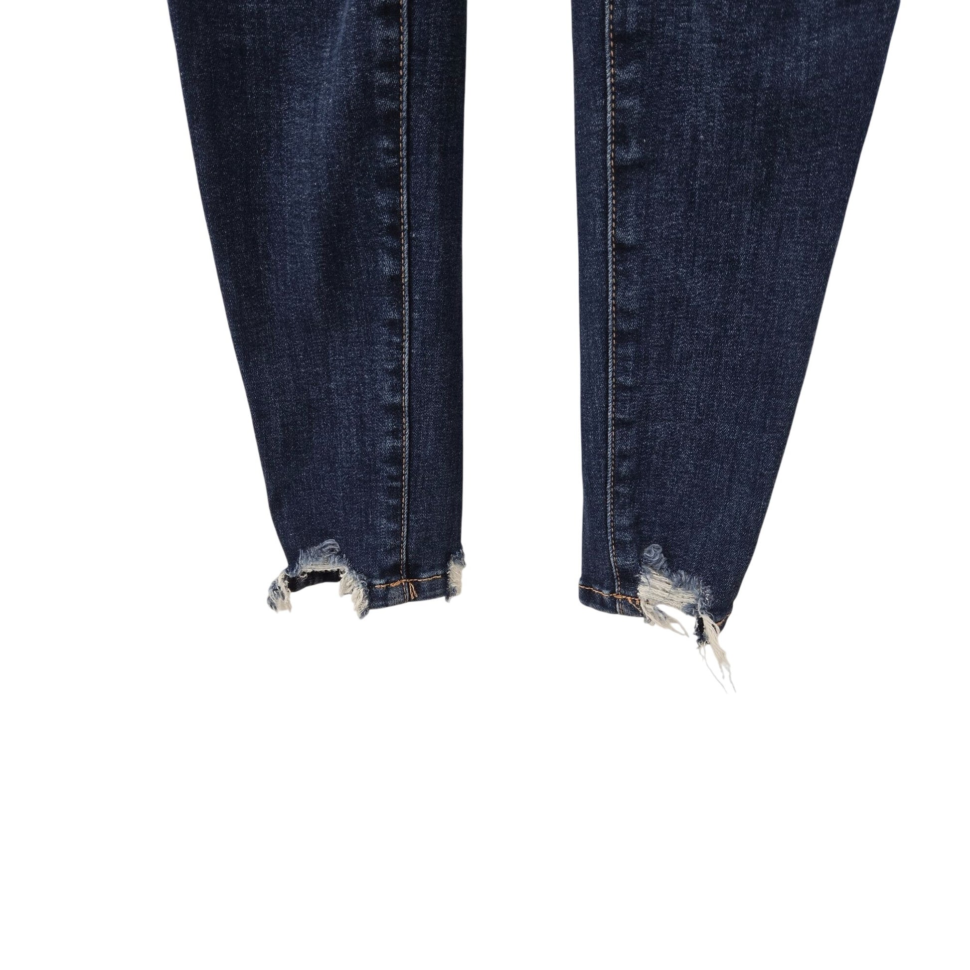 Medium wash high rise skinny jeans in a distressed style. There is some wash wear fading on these but still have some good life in them. See all pics for details and expand as as needed. NOTE these are sized as a SHORT so please check measurements for fit.