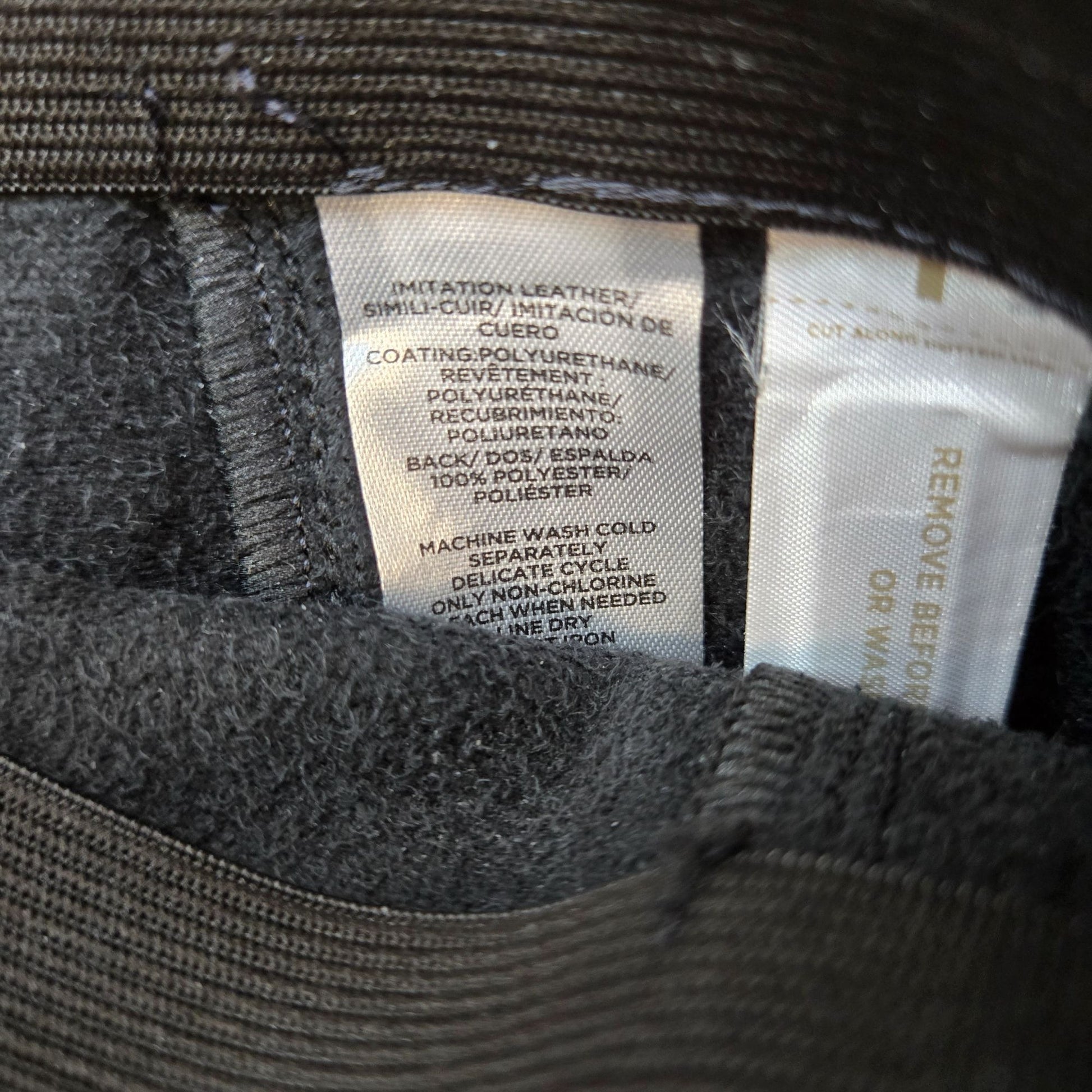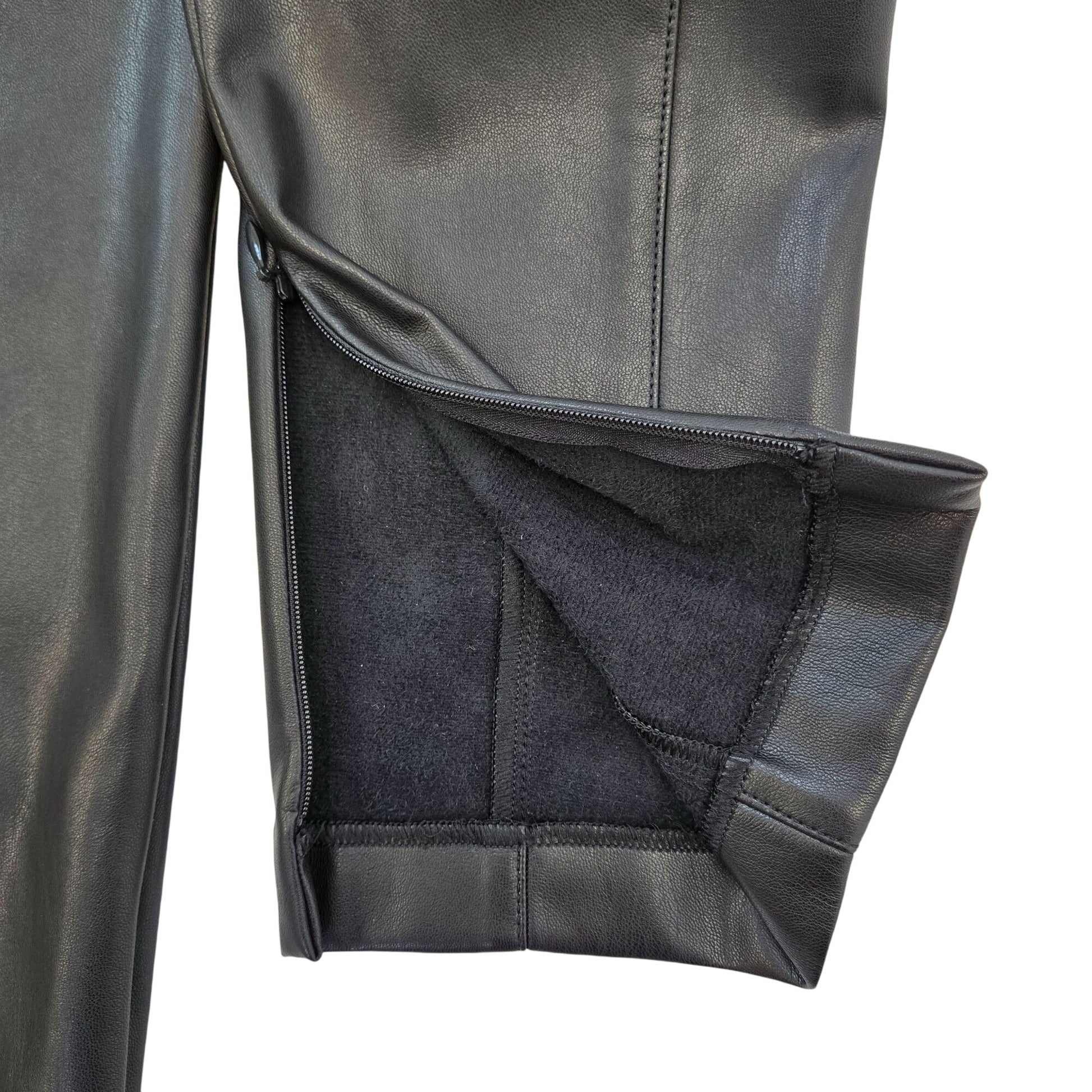 Really nice vegan leather high rise pants that have a flat front with no pockets and a zipper closure at the ankle. You can wear this zipped to tuck into boots or have open for a flared look. Pair with a blouse, sweater or crop top.