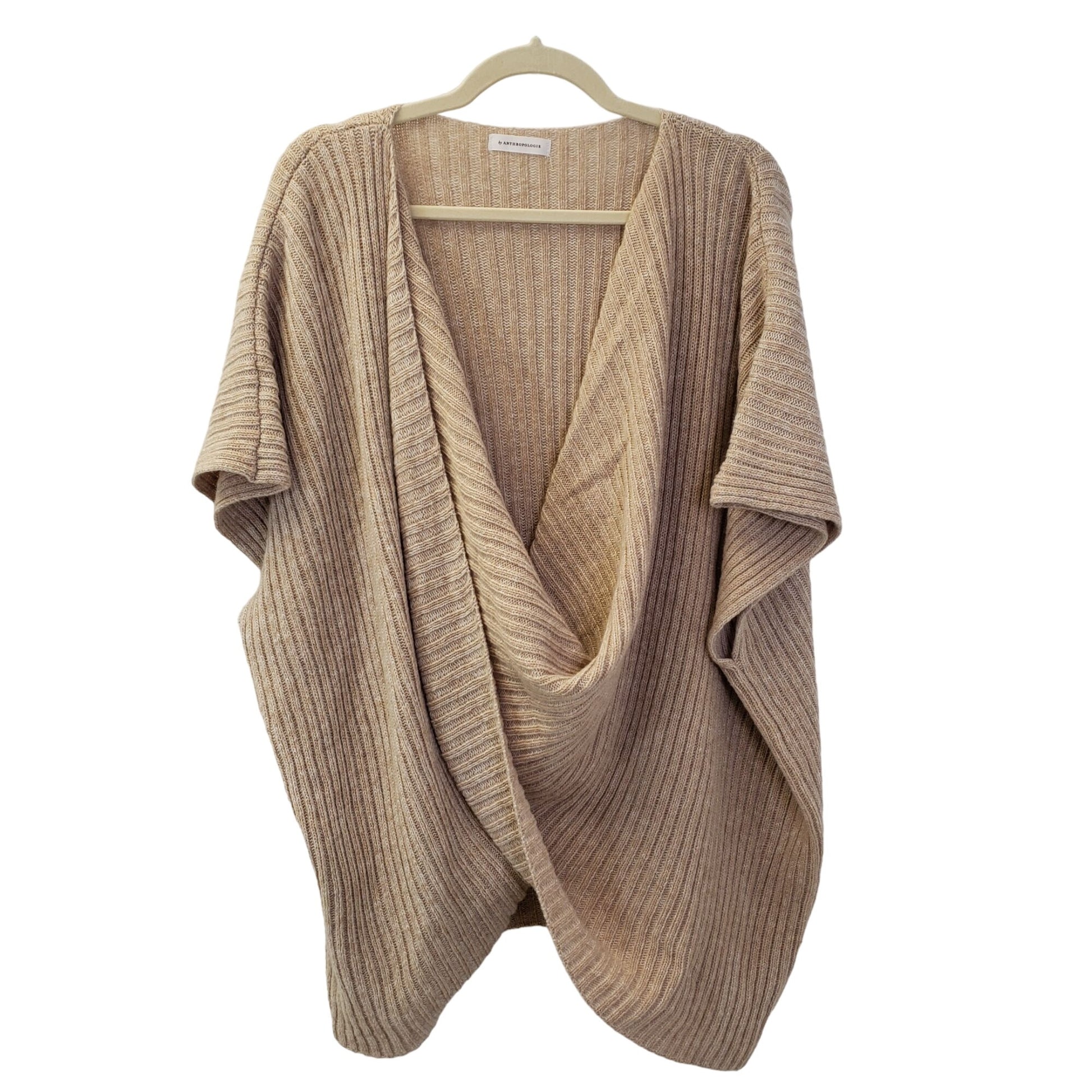 Anthropologie Wool Blend Ribbed Criss-Cross Poncho Sweater