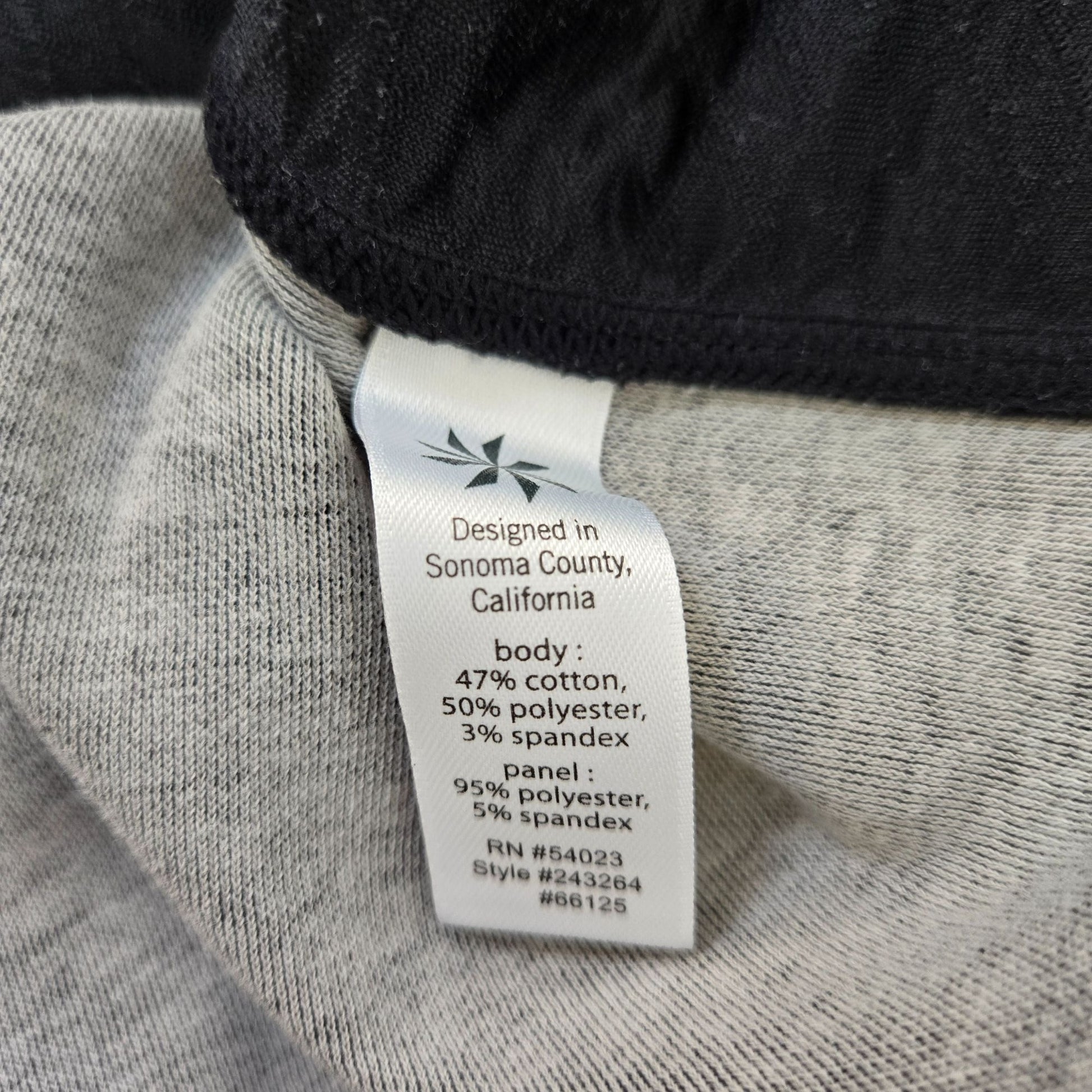 Really nice mixed media long sleeve activewear top that has defined sleeve cuffs. The colors are gray, white and just a faint hint of a muted purple. Great for any active day when it is a little cooler.