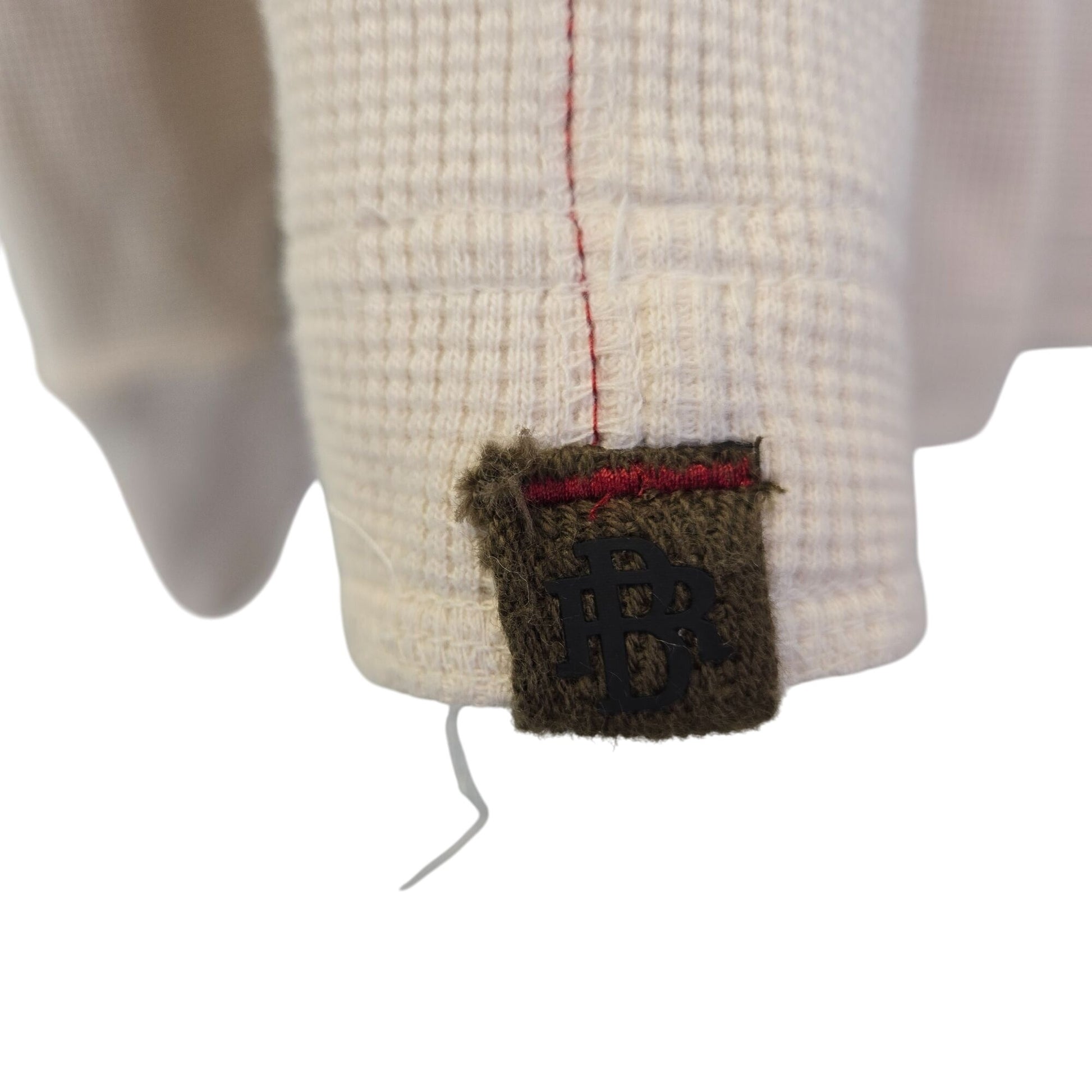 Really nice, classic thermal waffle knit Henley top with a three button closure. The color is a cream color with dark brown buttons.