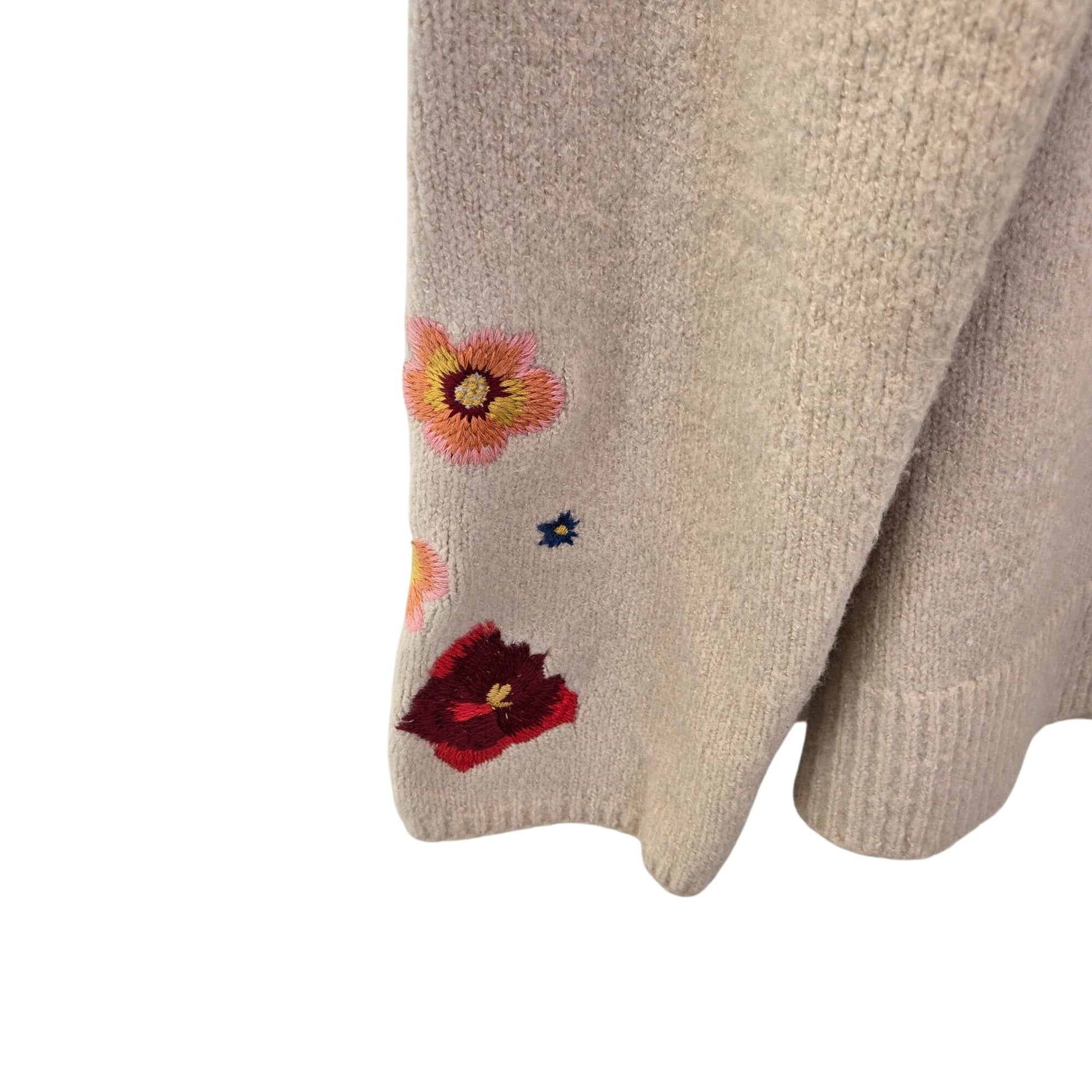 Heavier weight and thicker crewneck sweater that has floral embroidery throughout to give it all the Boho vibes. This is a versatile sweater to pair with trouser pants for work or with jeans for a more casual vibe.