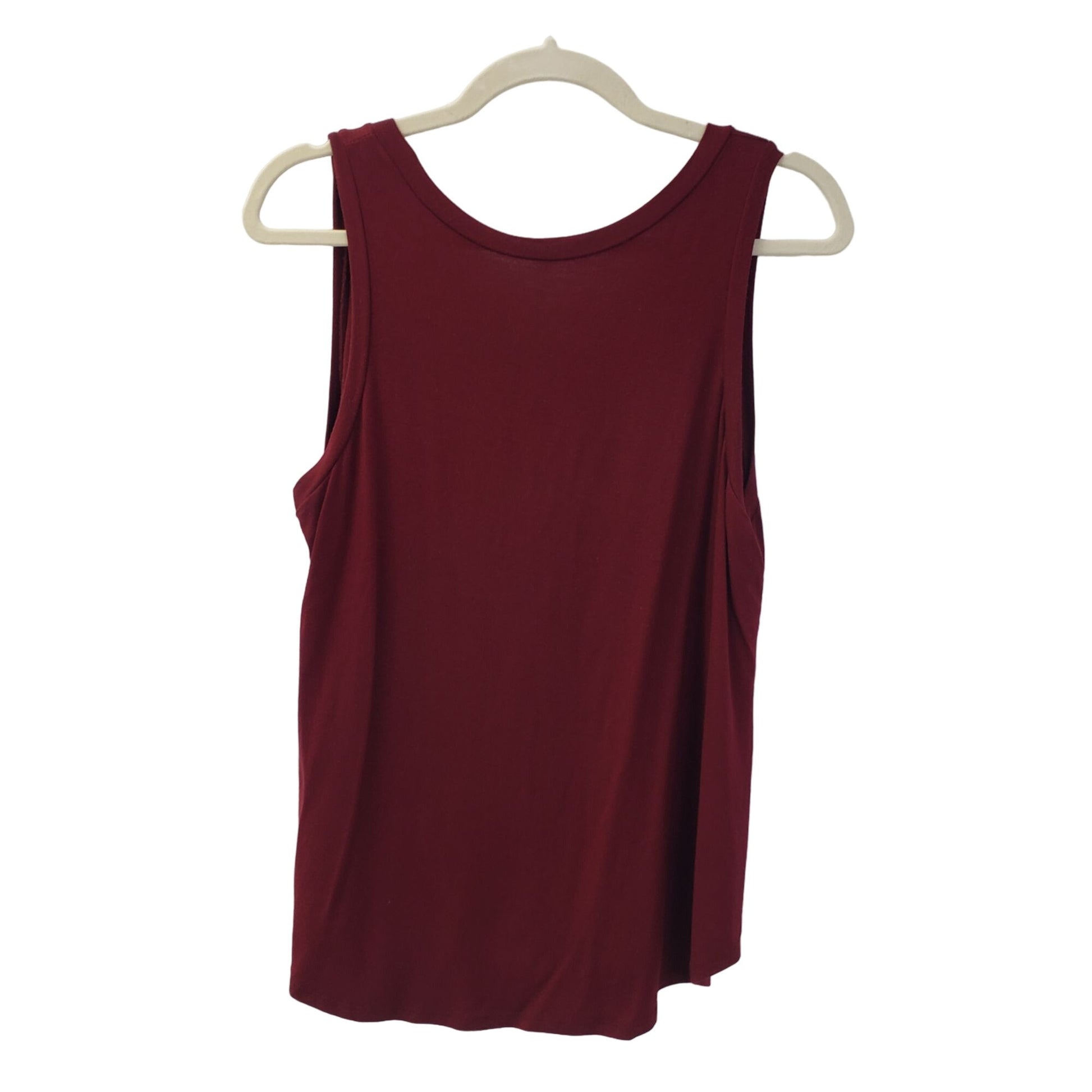 Really nice and lightweight wine color tank top that is a little flowy at the bottom. Great piece for any active day.
