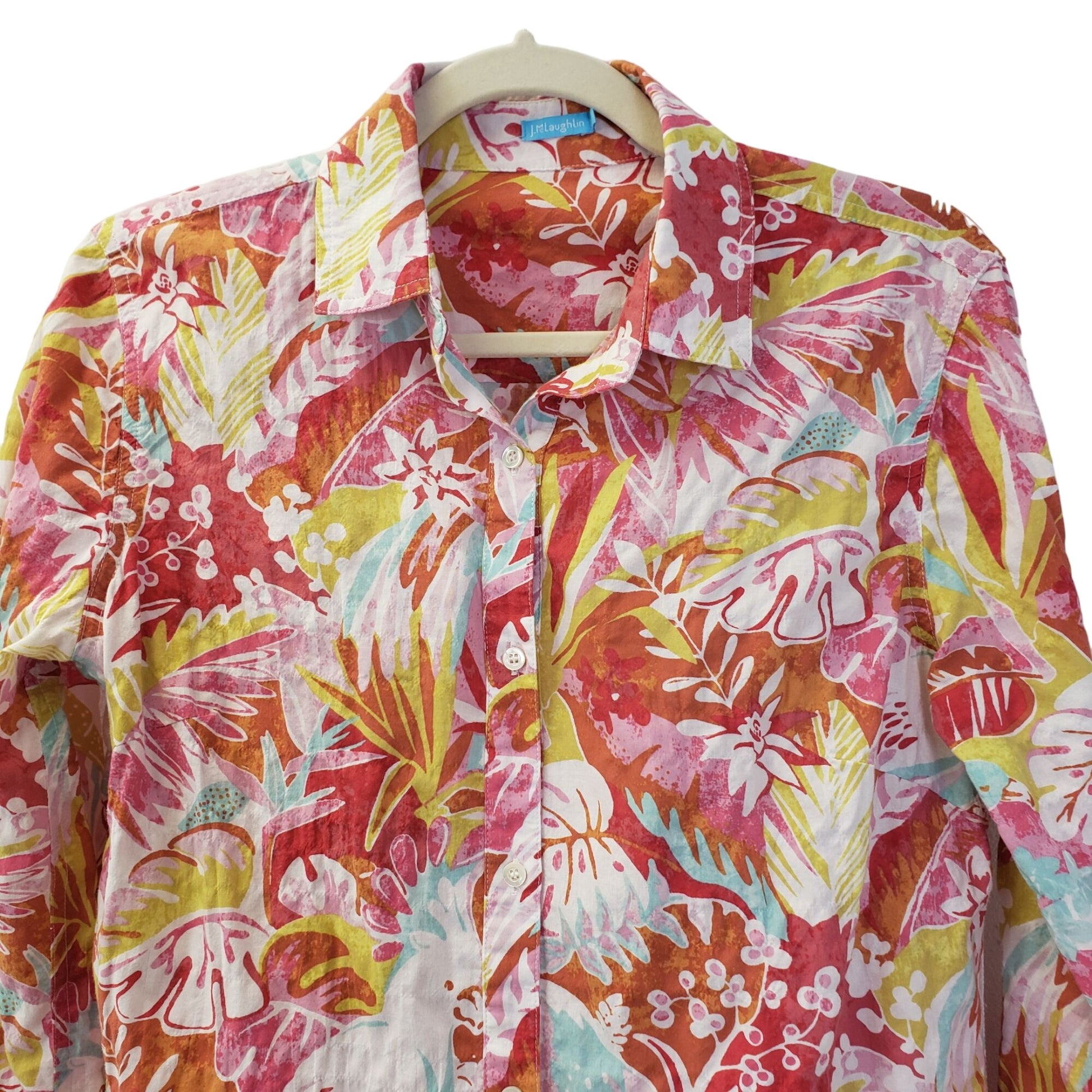 J. McLaughlin Tropical Print Button Down Shirt Size Small