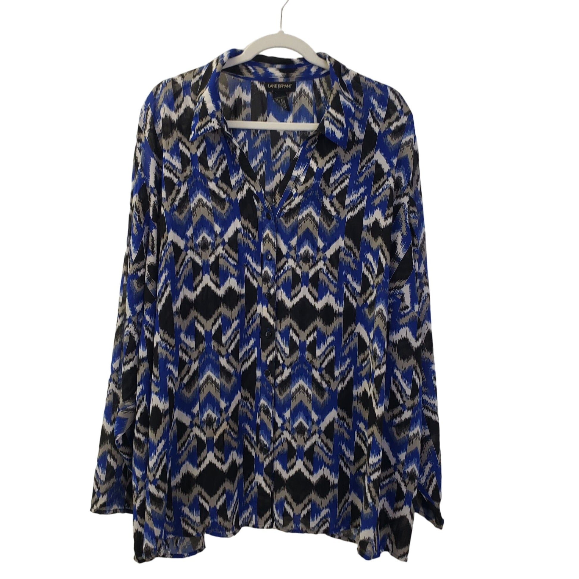 Lane Bryant Ikat Print Button Down Blouse Size 26/28
