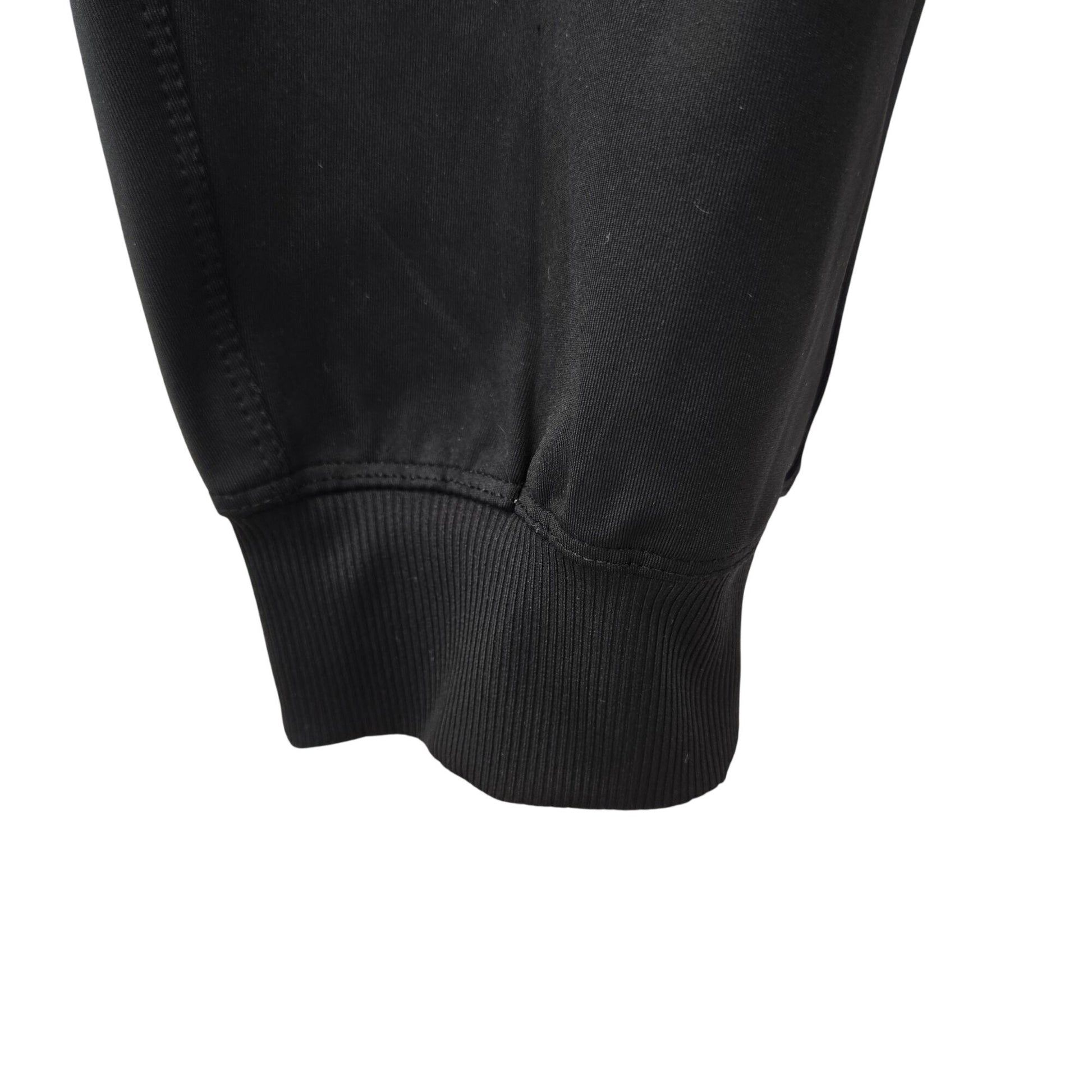 Ribbed covered elastic waistband. Two front zipper pockets. Ribbed cuffs.
