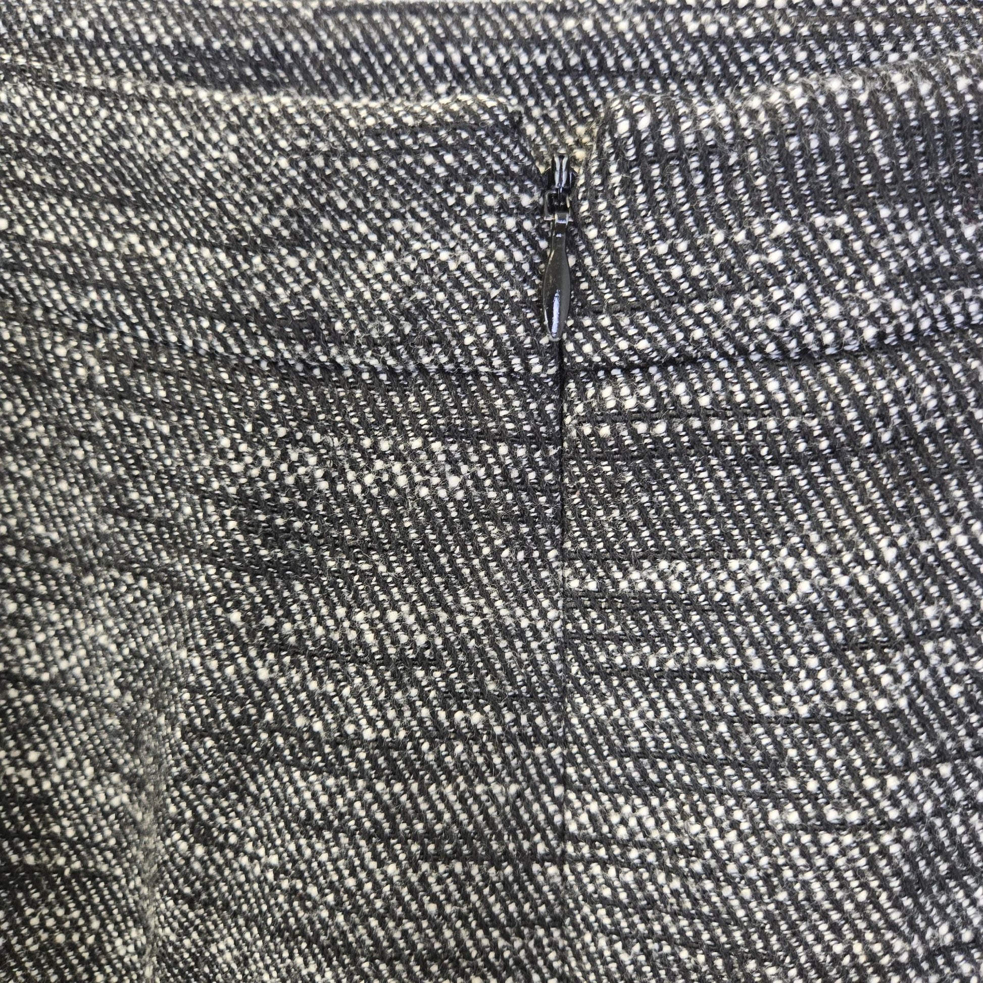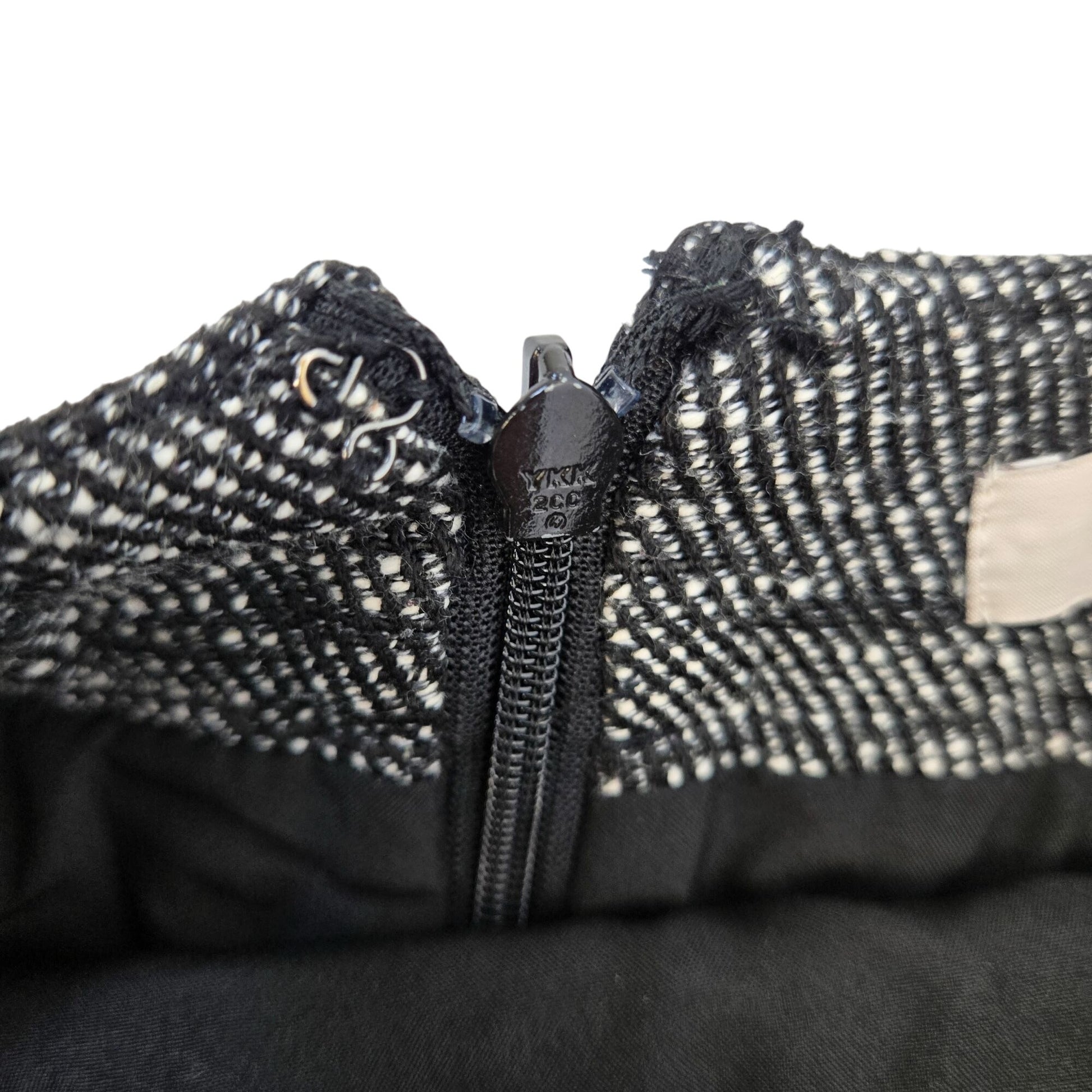 Classic tweed pencil skirt that is a wrap design with a fringe panel down the front.