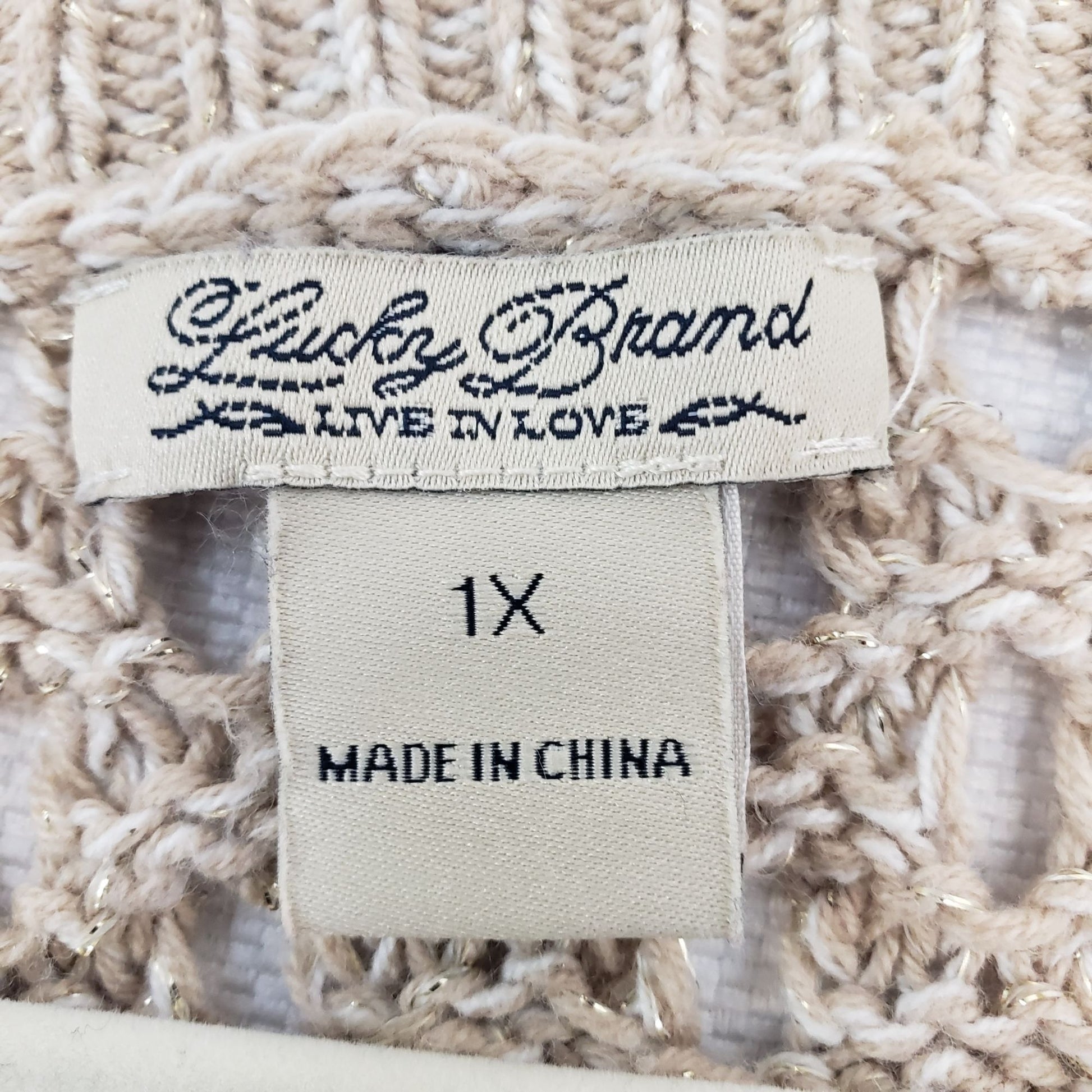 Lucky Brand Open Knit Metallic Crewneck Sweater Size 1X