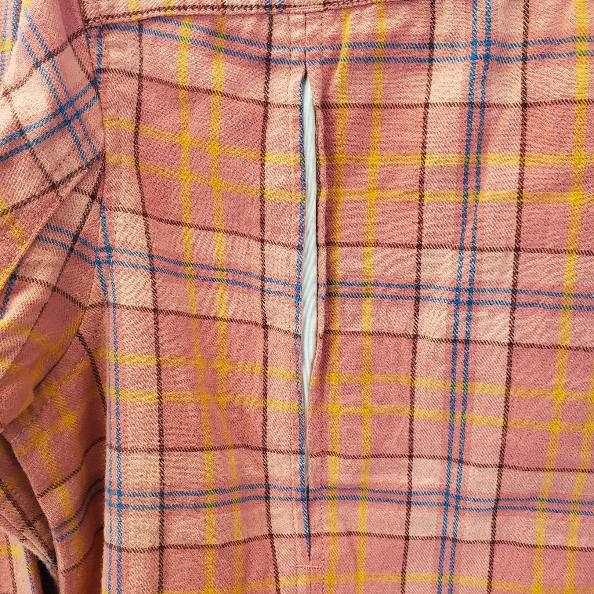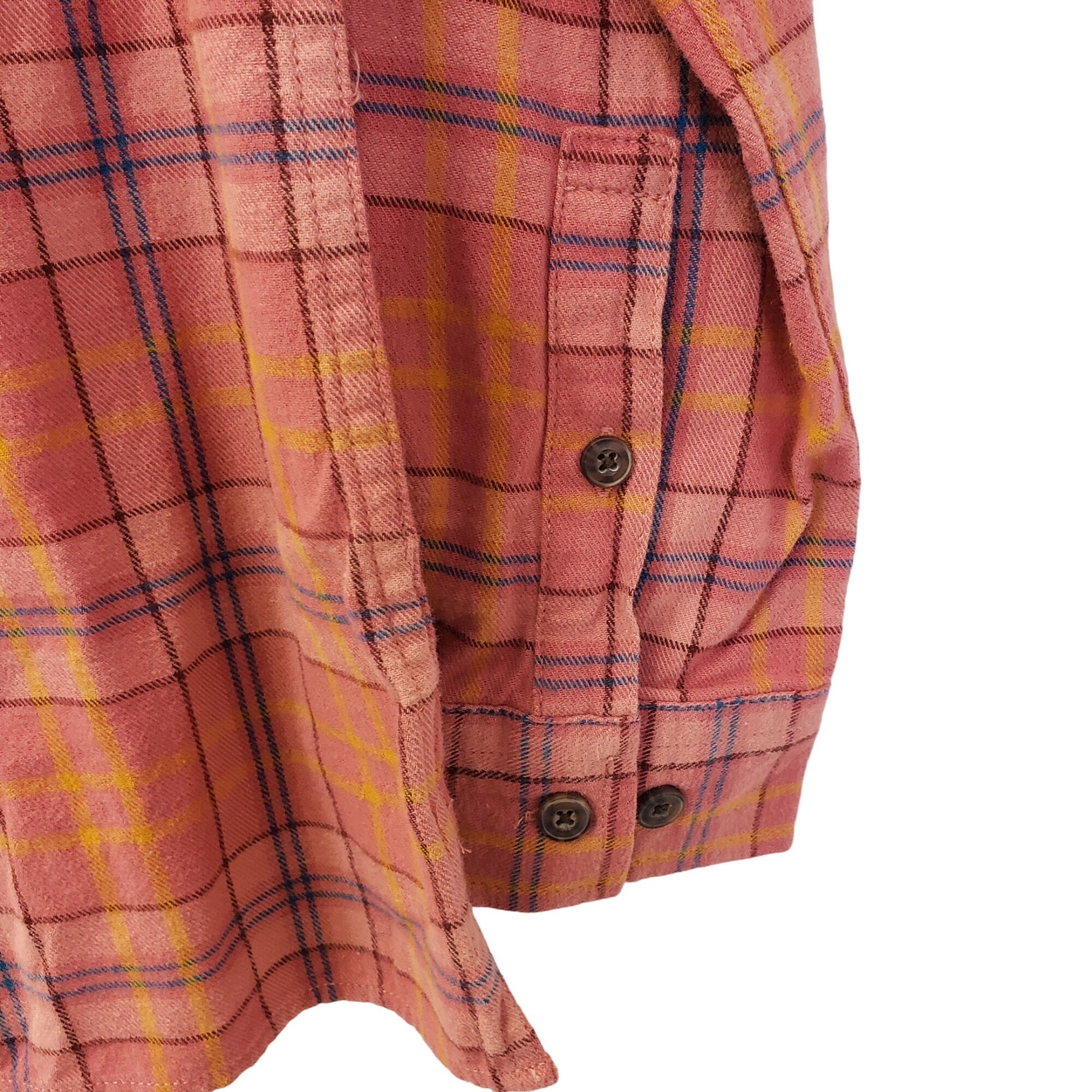 Really great flannel plaid button down shirt that has some expanding panels on the back to help you move when active. Adjustable closure at the wrists. Pair with jeans or activewear pants depending on the day.