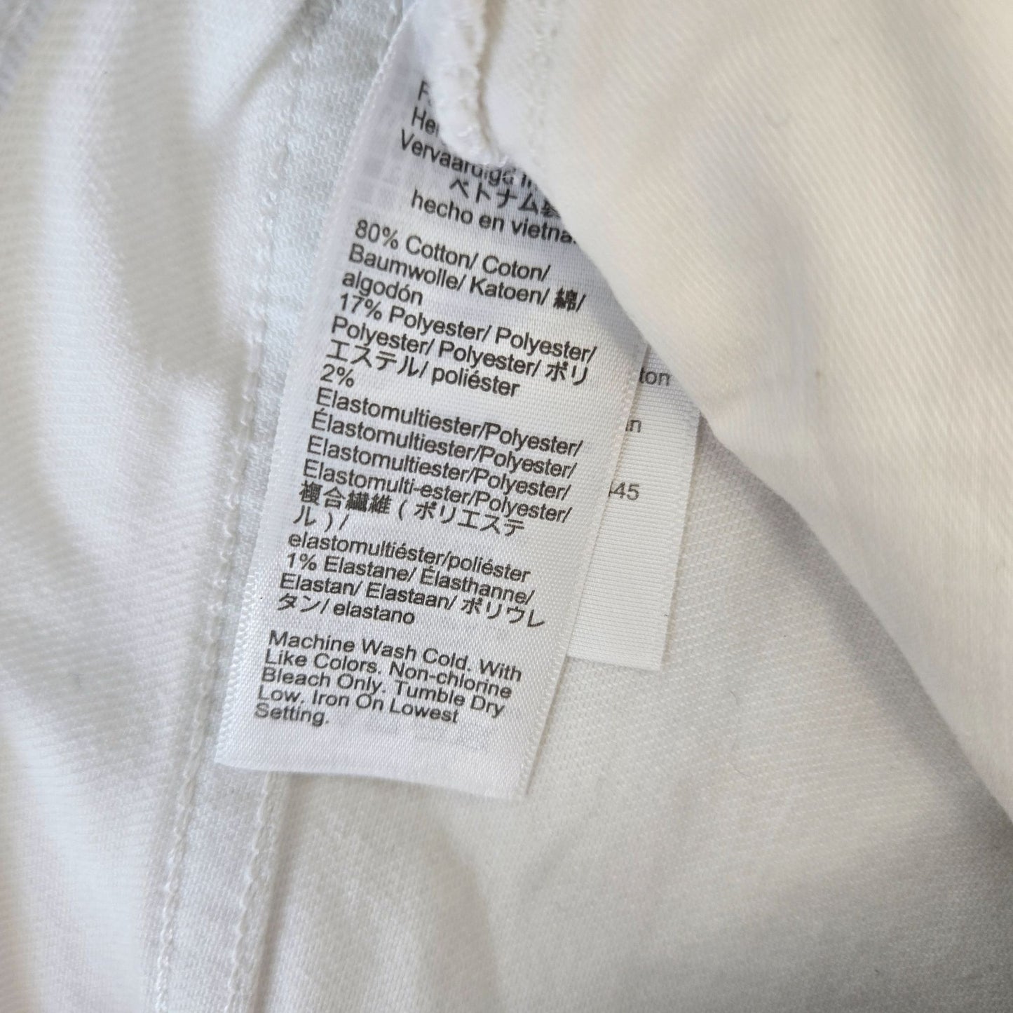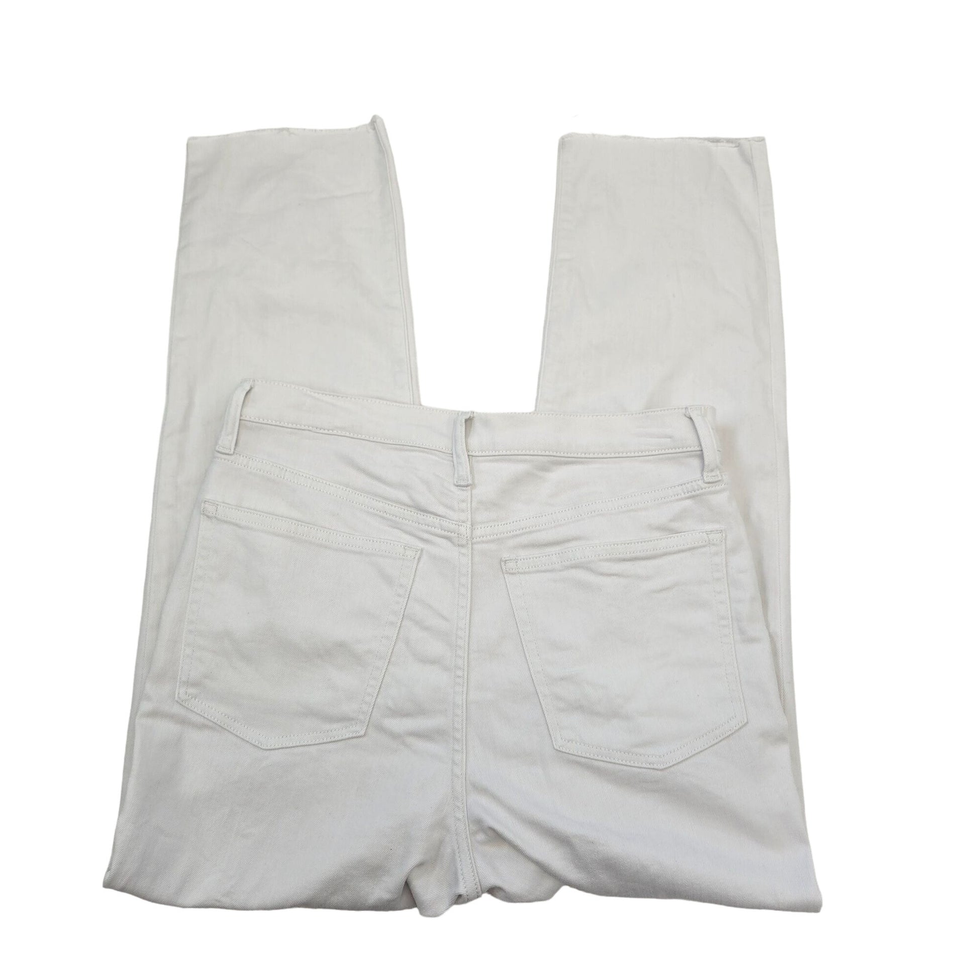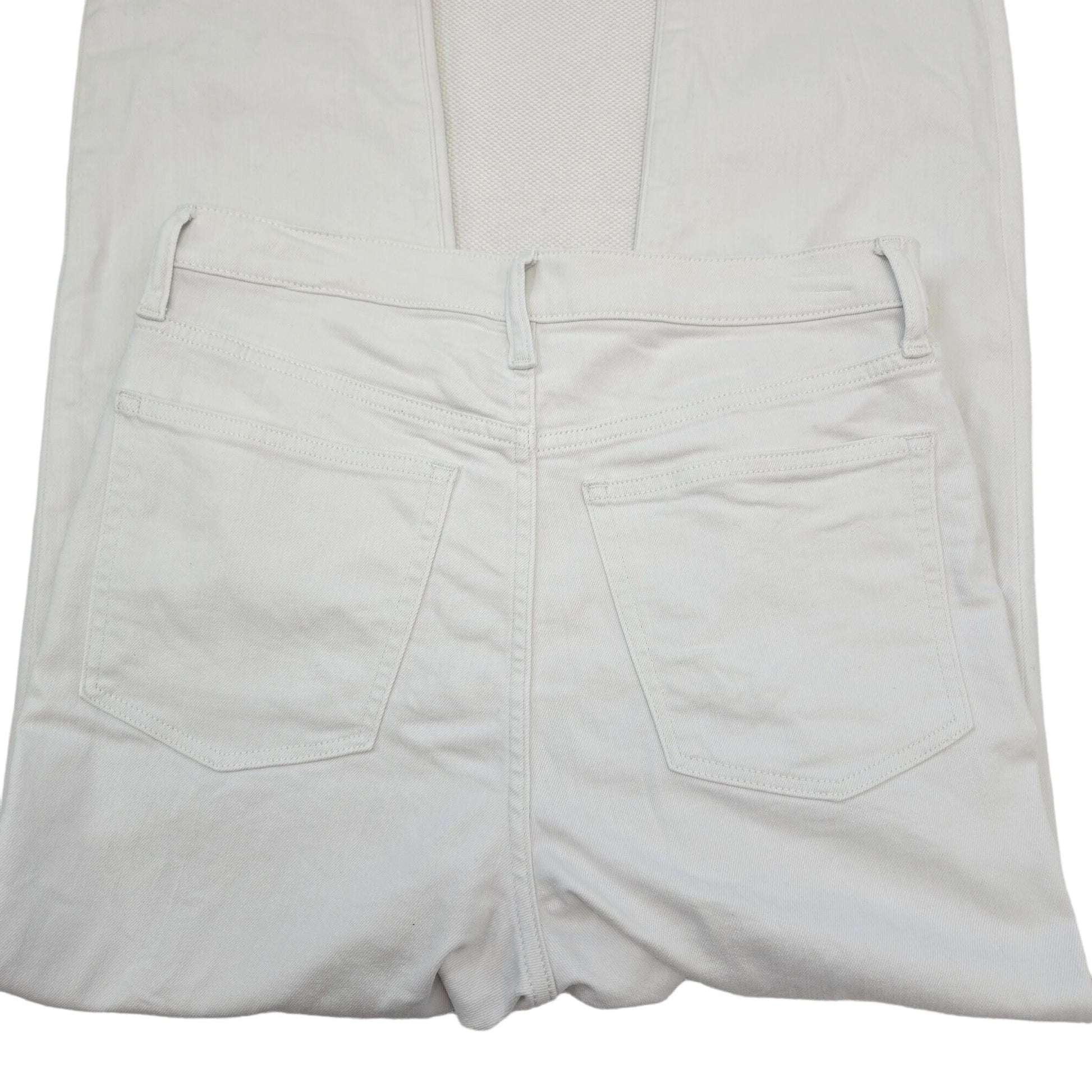 Really nice very white straight leg jeans with a raw hemline. Great to pair with sneakers, sandals or boots. Great alternative to blue jeans when you want to dress up.