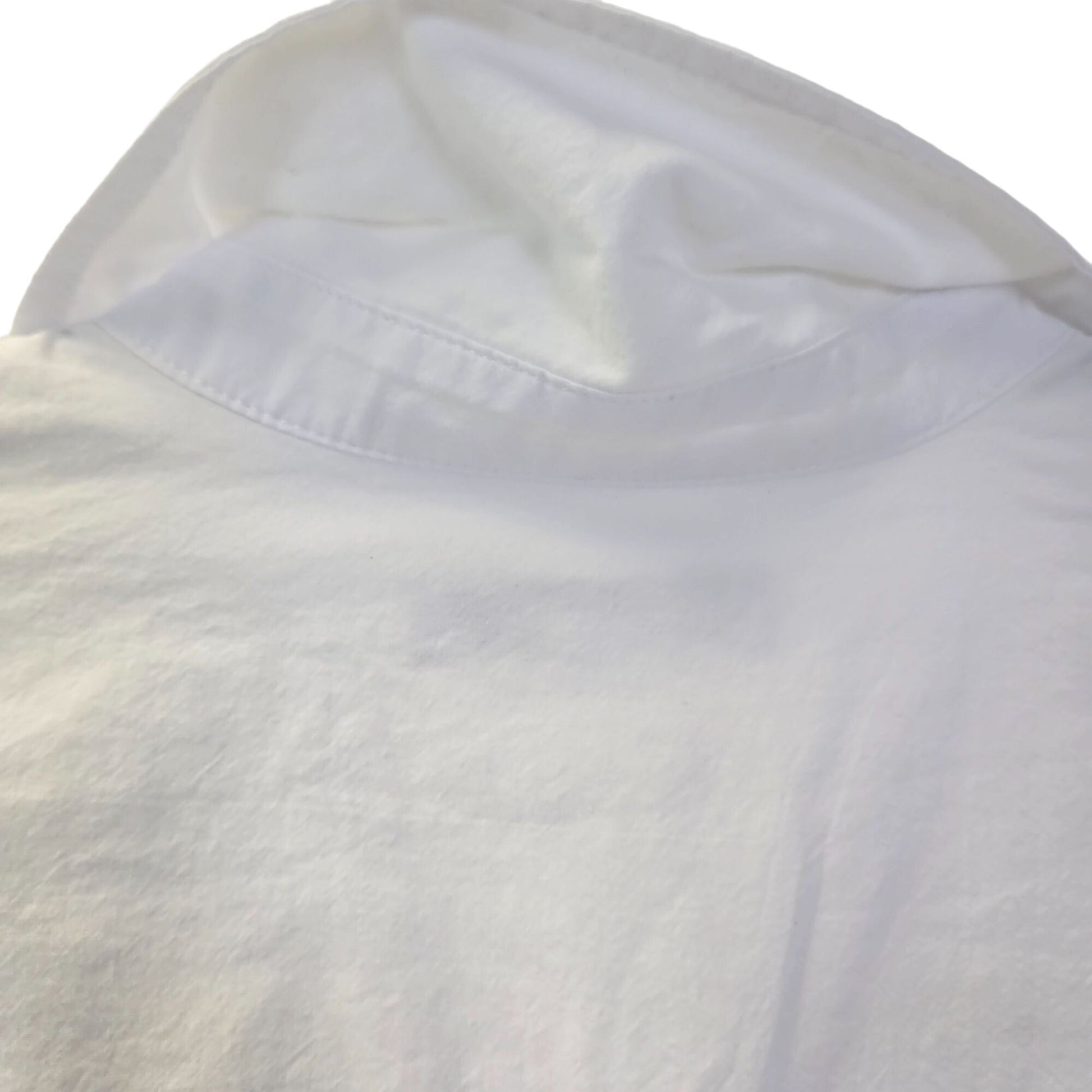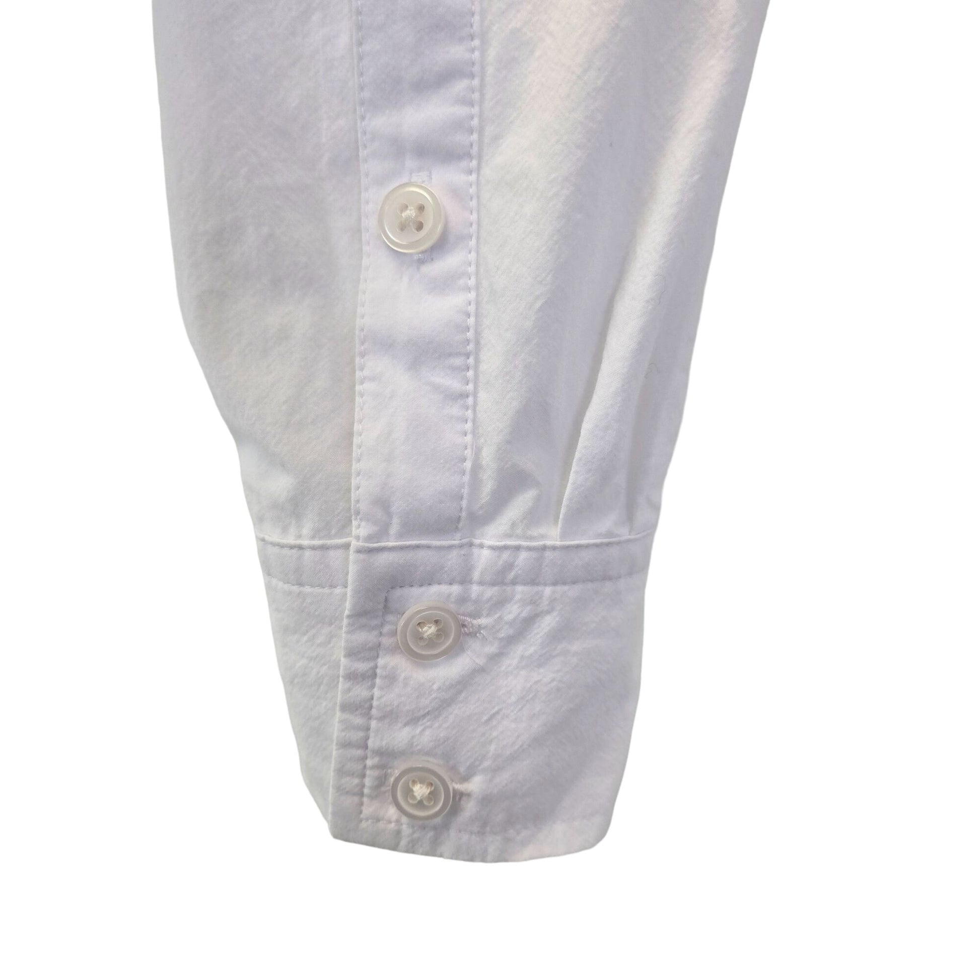 Classic white button down shirt that is oversized so great for layering or creating that slouchy look. Lightweight and semi-sheer so you may need to layer a cami or tank underneath. Split hem design for a clean front tuck and three button closure at the wrists. Wear for work or pair with jeans for a more casual day.
