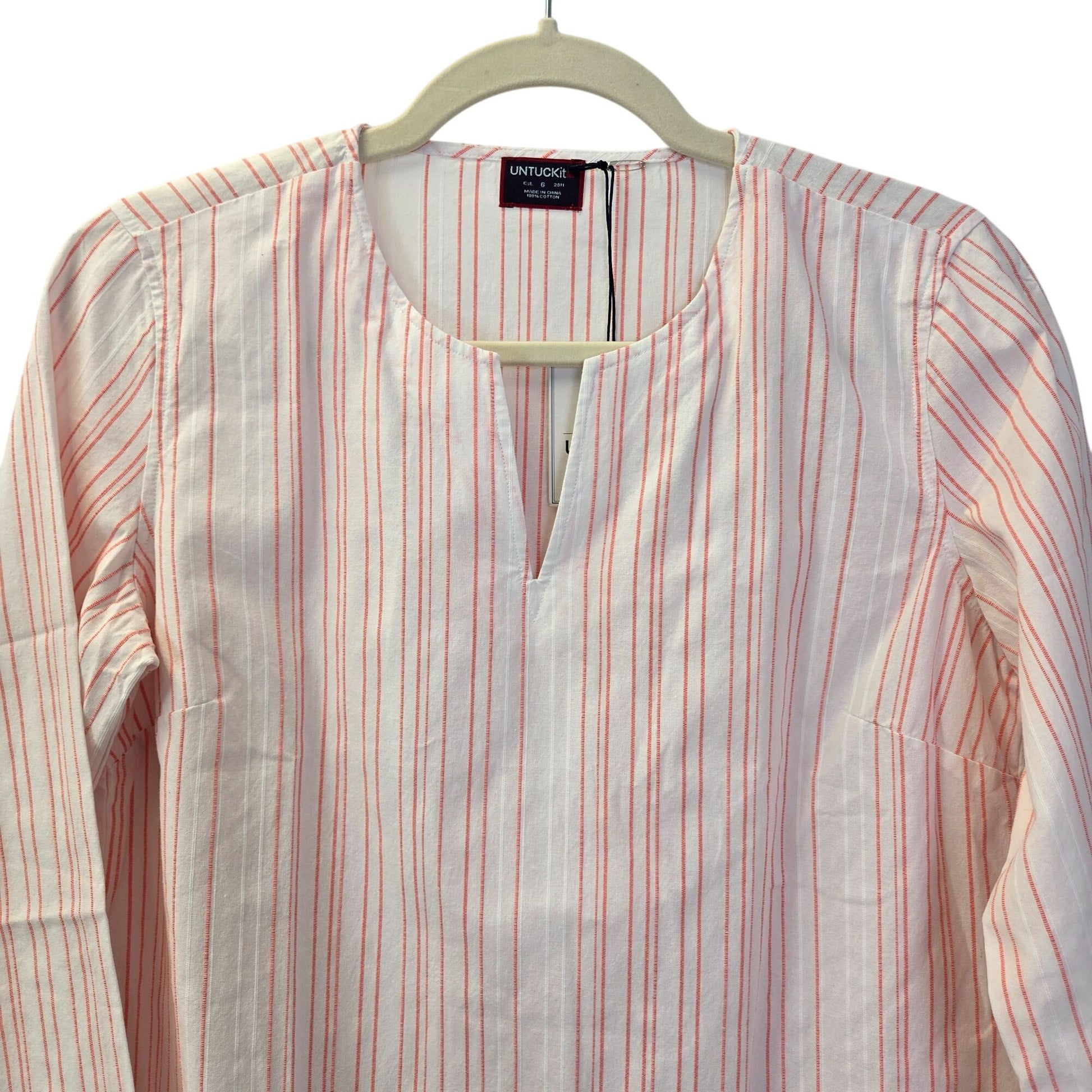 NWT UNTUCKit Dufort Striped Long Sleeve Split Neck Shirt Size 4