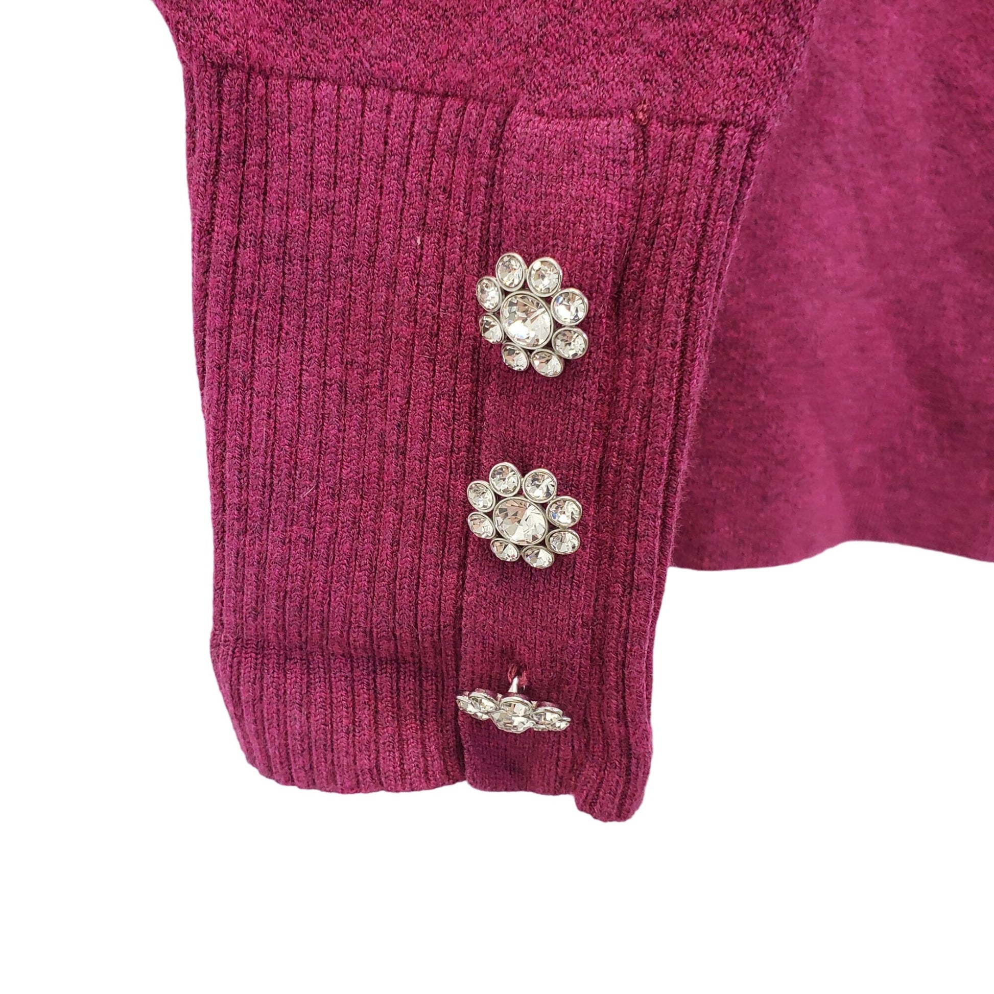Tahari Jewel Button Embellished Mock Neck Sweater Size Small