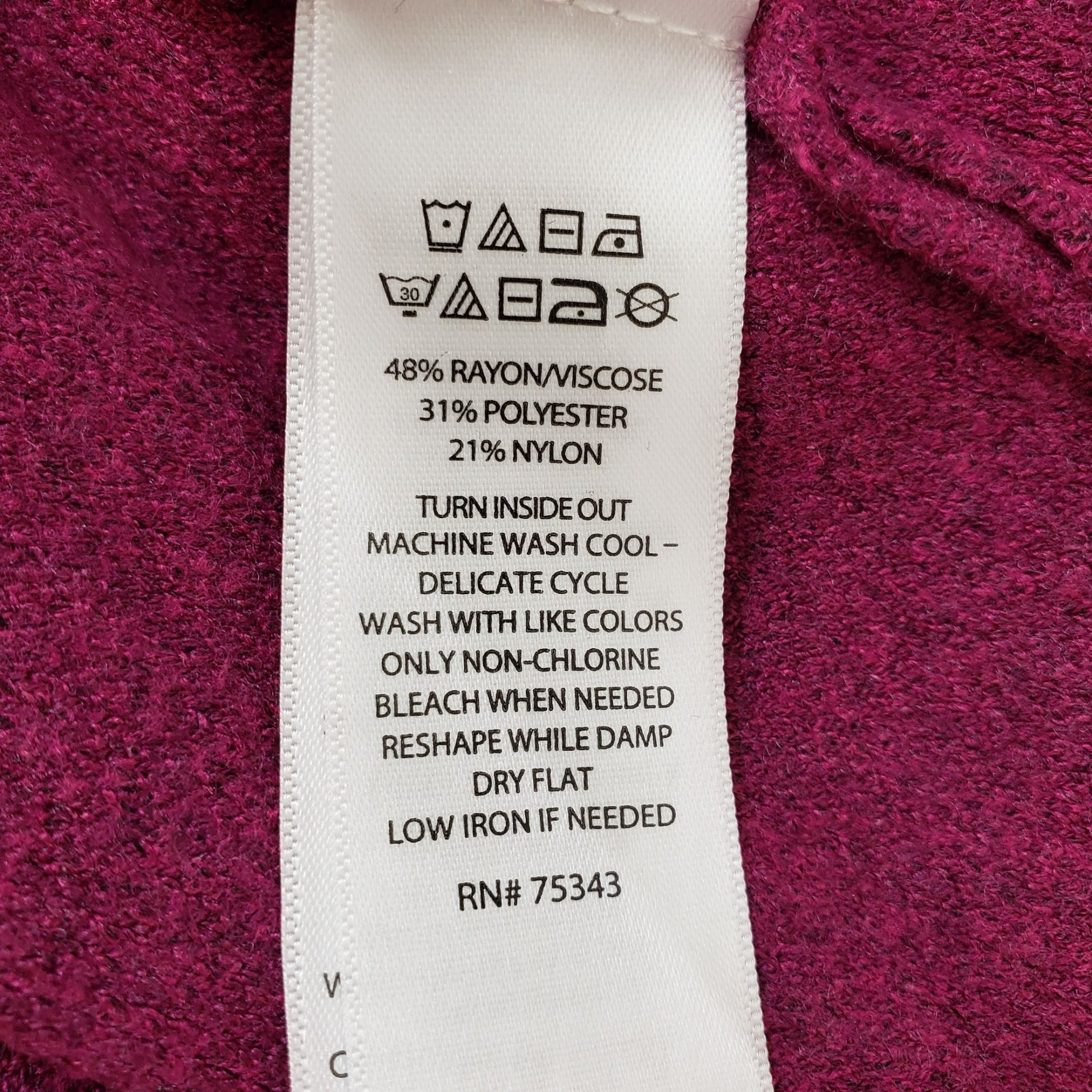 Heavier weight mock neck sweater that has embellished buttons on the sleeves -(non-functional). Pretty pink color. Great career piece or pair with jeans for a more casual event.