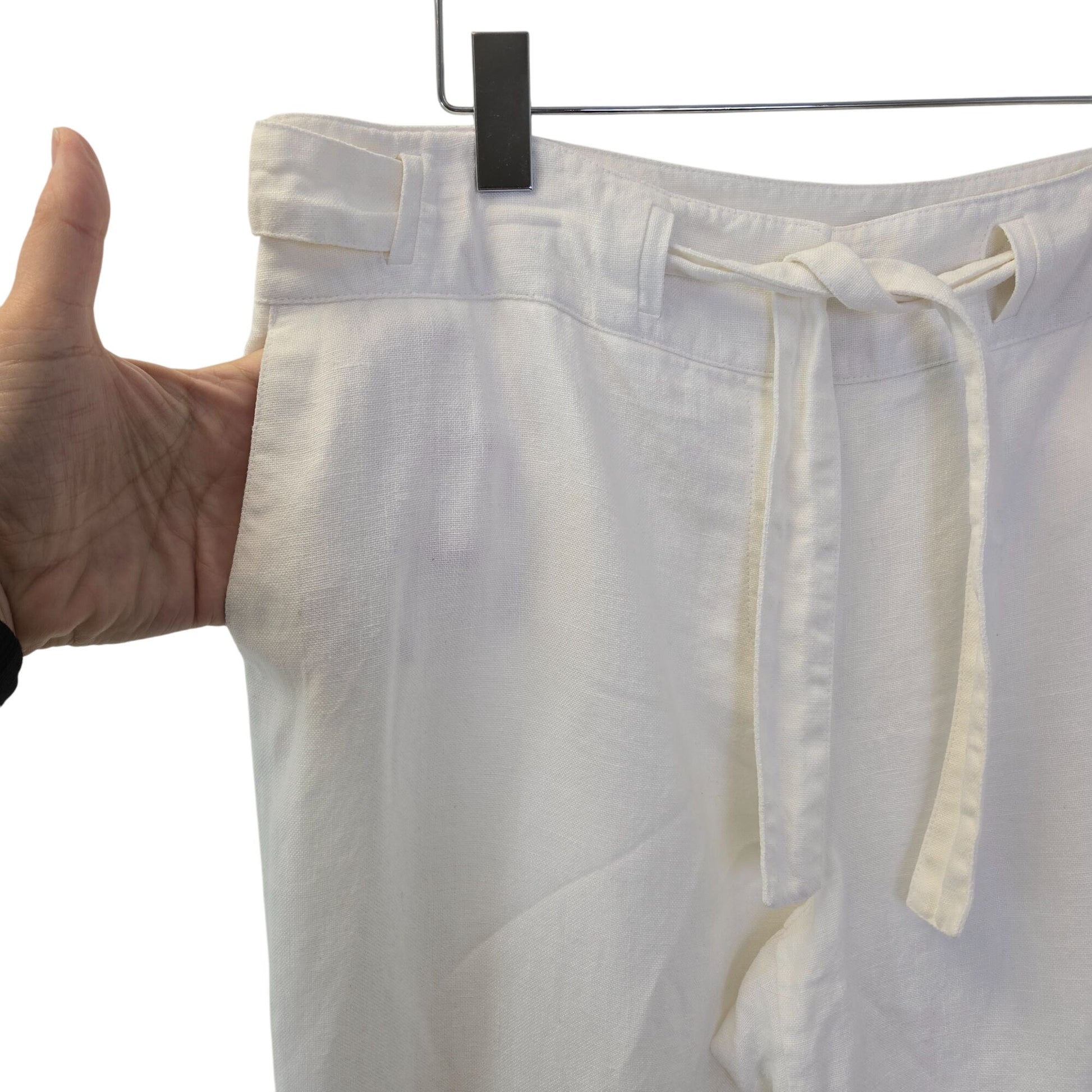 Talbots 100% Irish Linen Wide Leg Belted Crop Pants Size 16