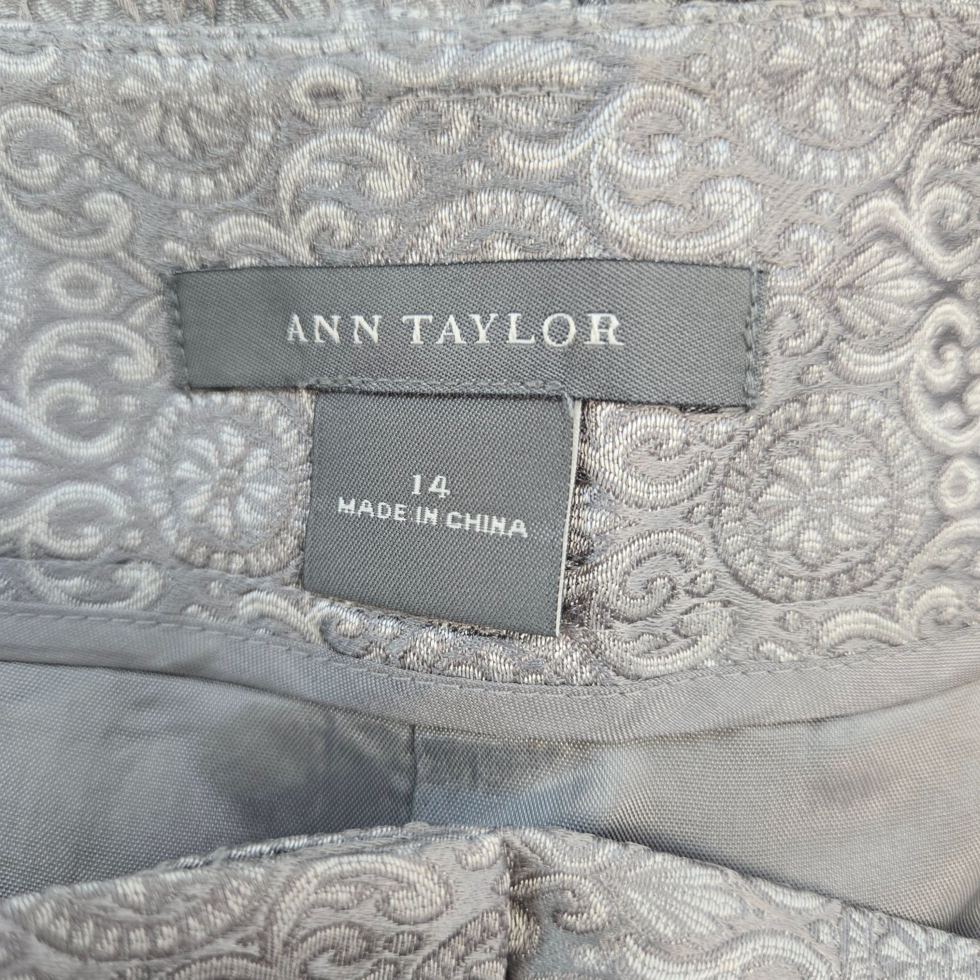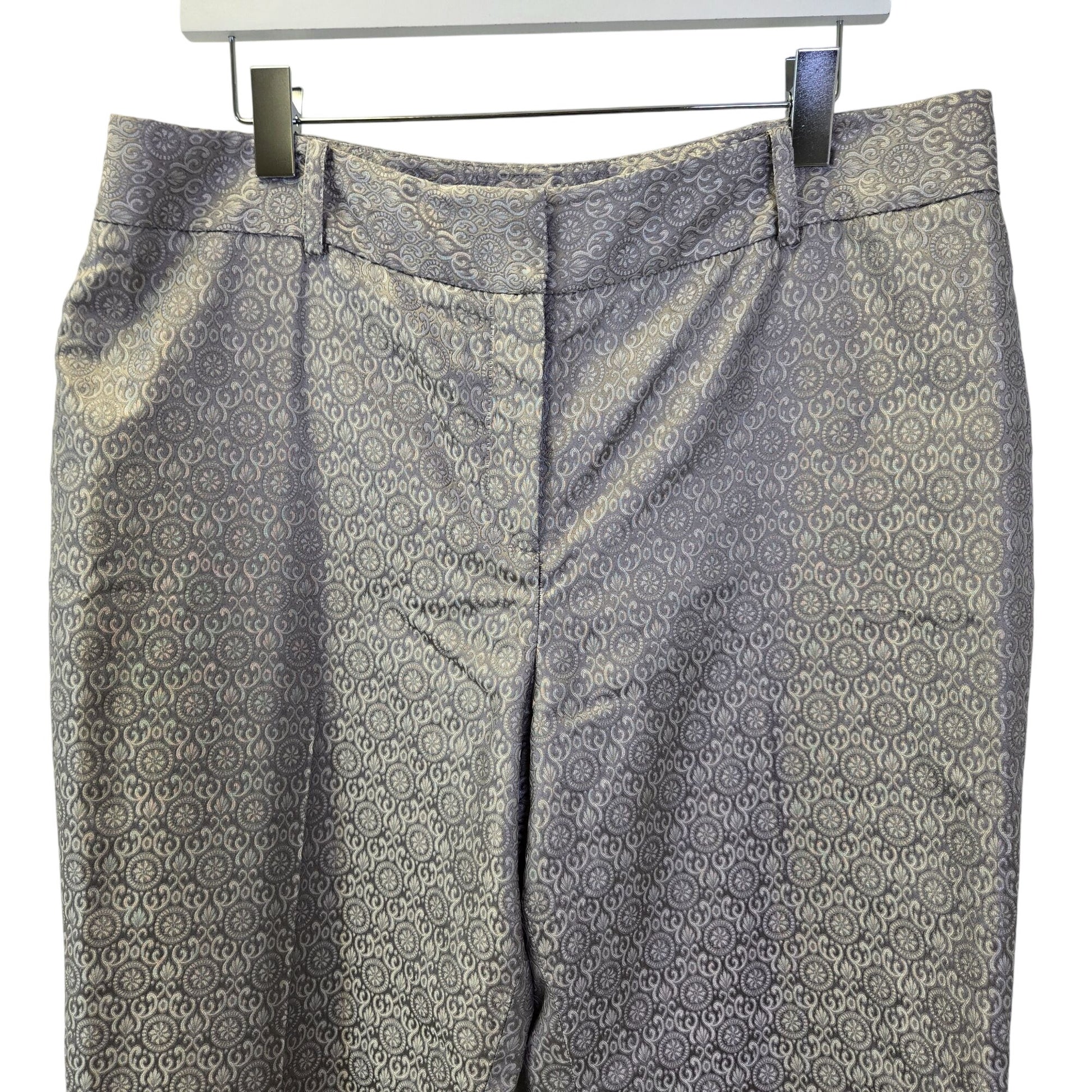 Ann Taylor 100% Silk Jacquard Print Metallic Trouser Pants Size 14
