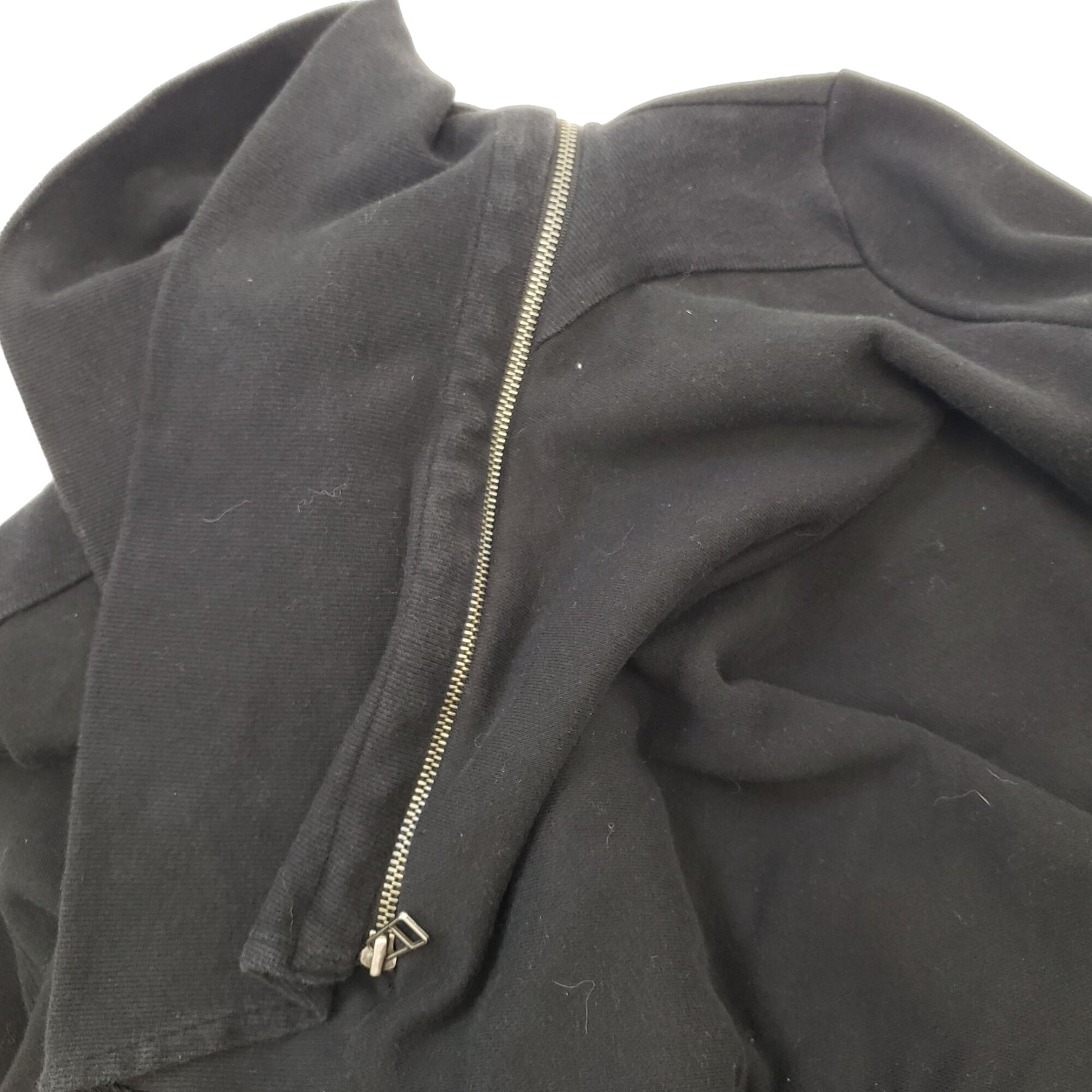 Heavier weight open cardigan jacket that has side pockets and the collar zips open to become a hood. Great piece for a casual day shopping. This does have some light wash wear to it but otherwise, in really good condition.