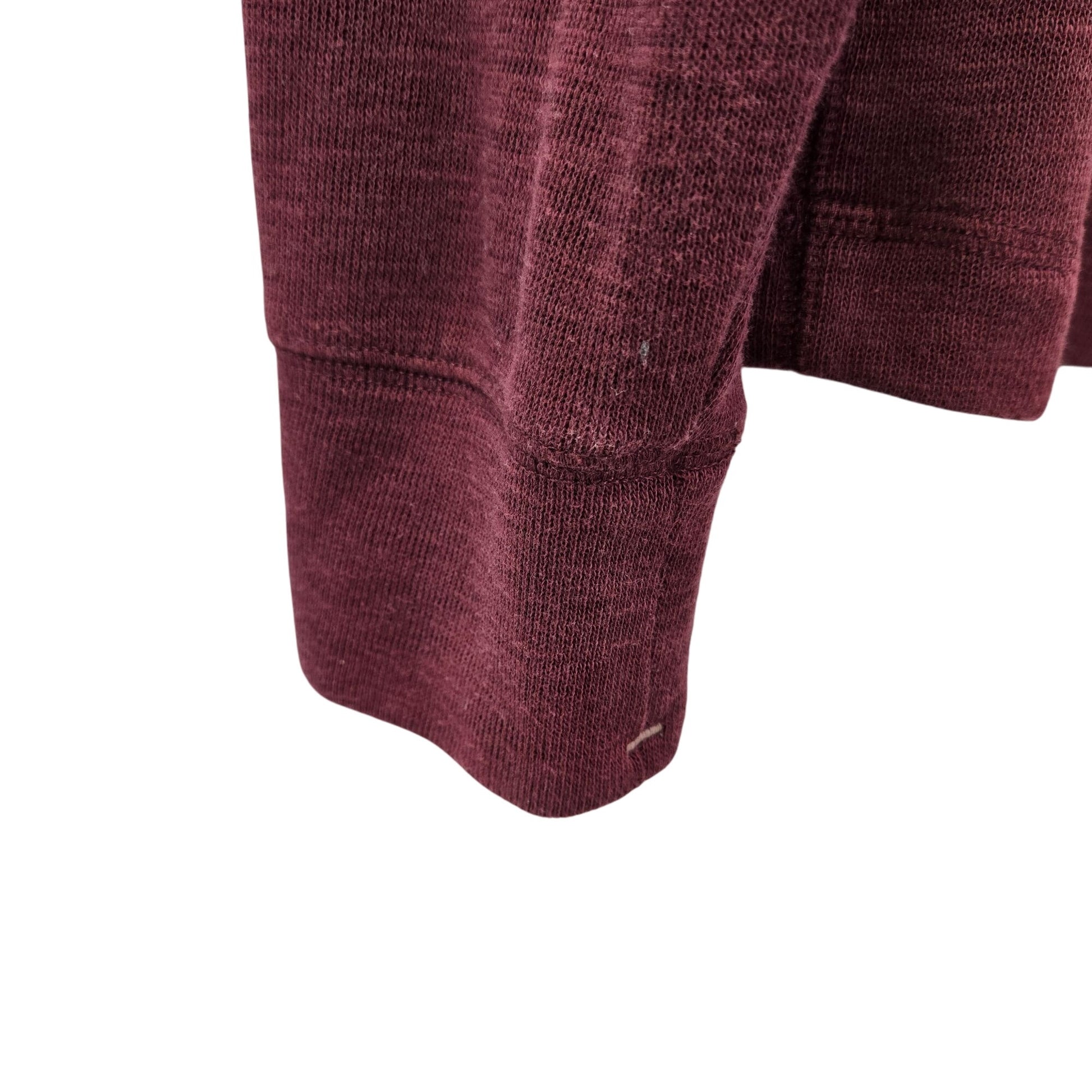Great closet staple for the casual person. This medium weight sweatshirt is a crewneck style and great to layer with a t-shirt underneath or even wear with a button down shirt to elevate the look. Color is maroon. Very lightly fleece lined.