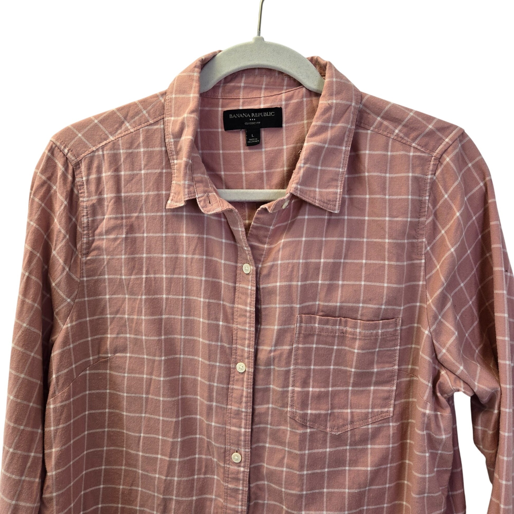 Banana Republic Factory Windowpane Plaid Button Down Shirt Size Large
