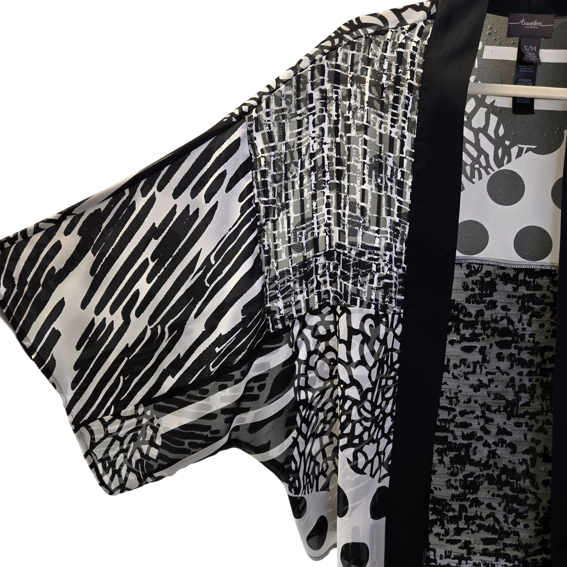 Chico's Travelers Mixed Print Flowy Dolman Sleeve Open Blouse Size S/M