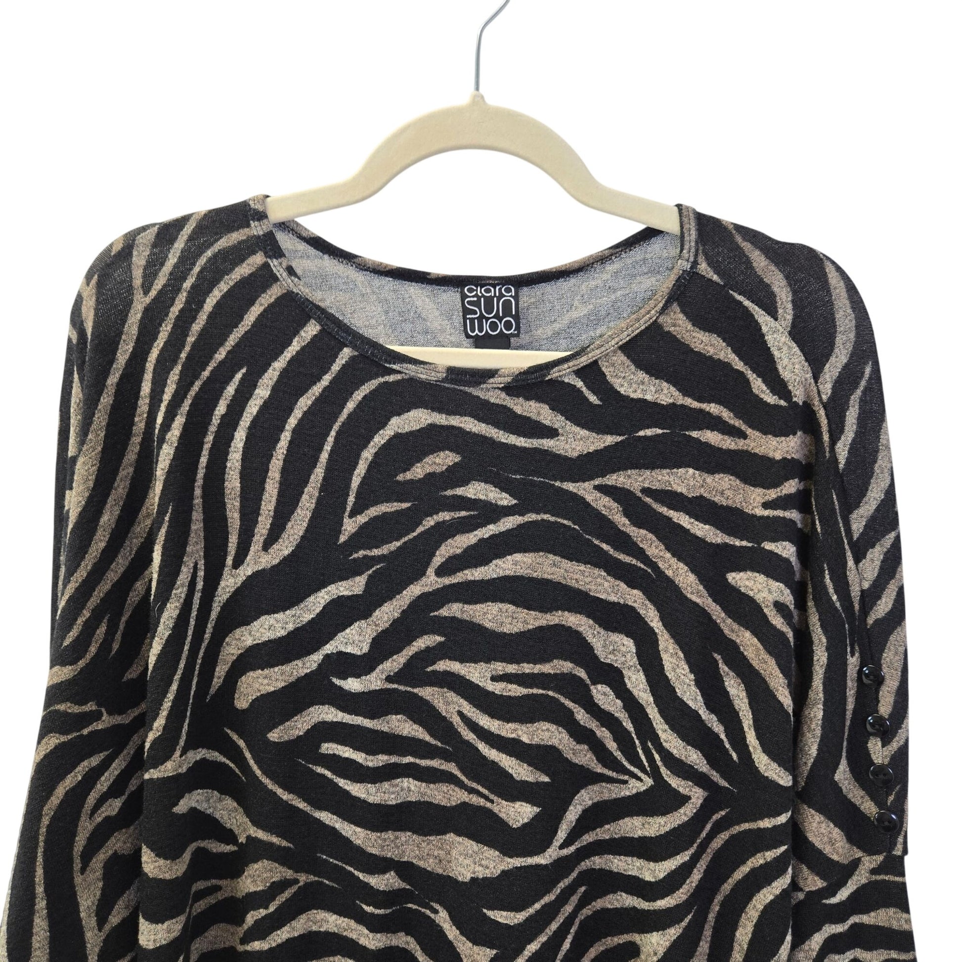 Clara Sun Woo Zebra Print Oversized Dolman Sleeve Sweater Size Medium
