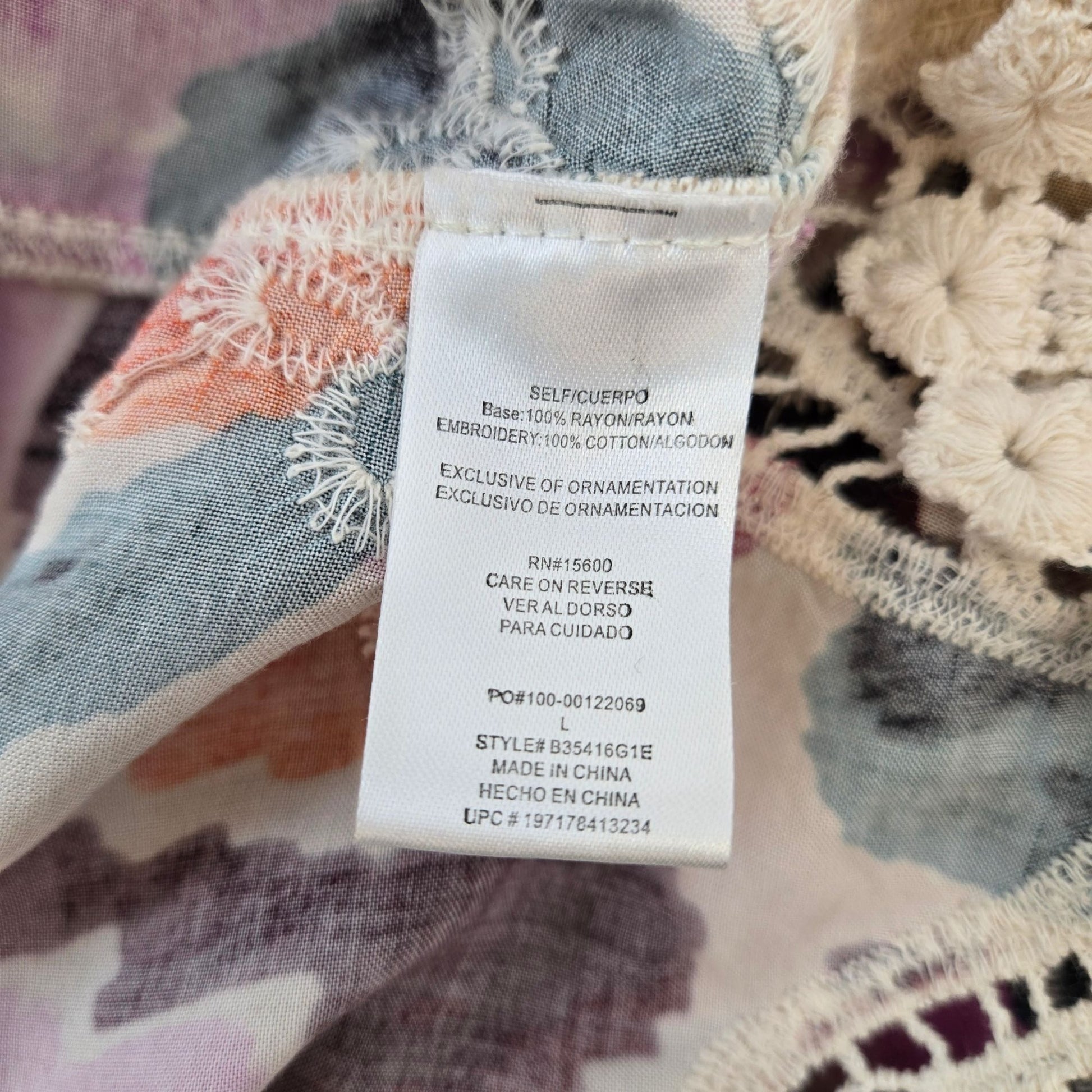 Democracy 100% Rayon Floral Crochet Accent Boho Top Size Large